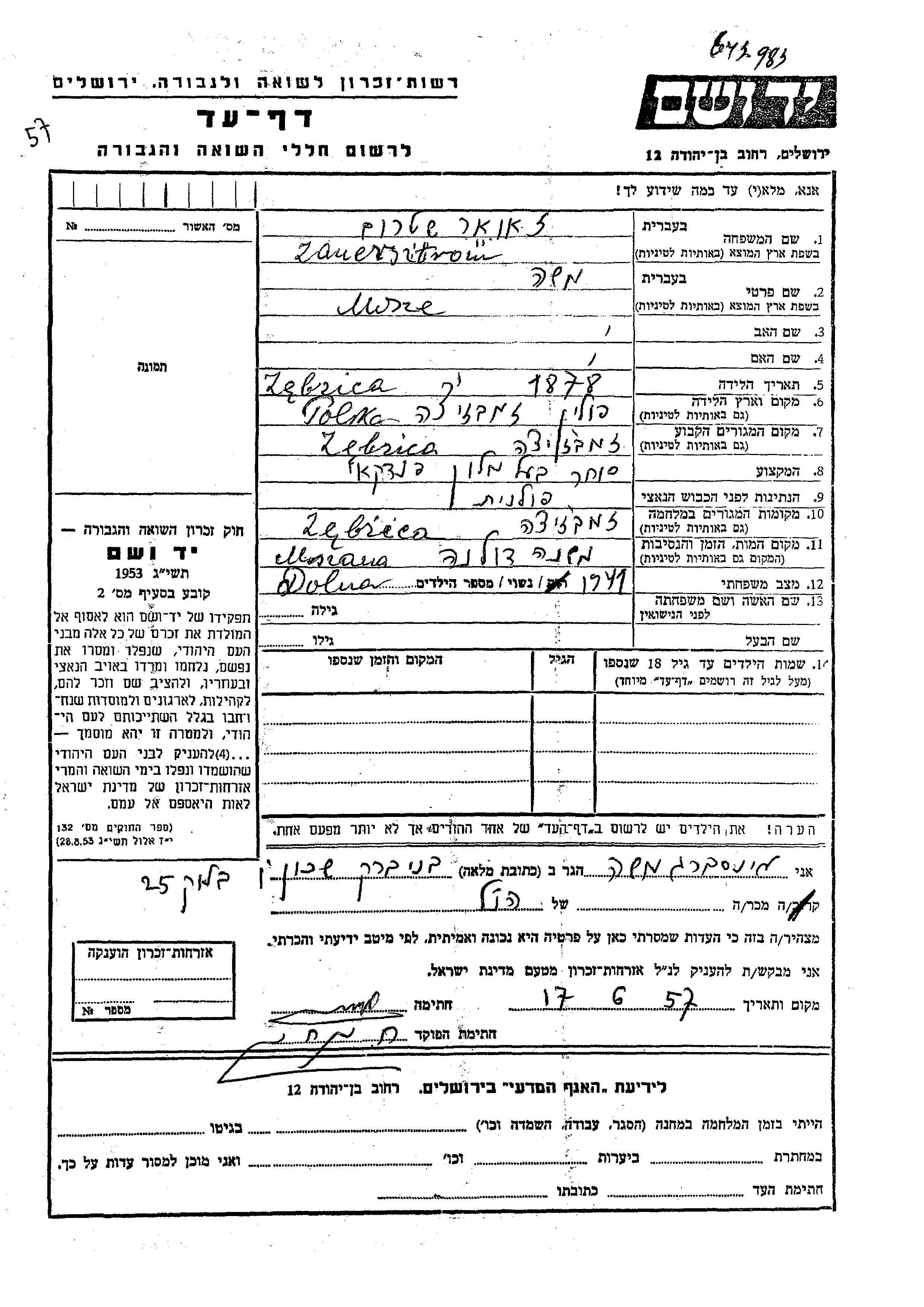Mosze Zauershtrom was born in Zembrzyce, Poland, 1878. He was an innkeeper and married. Prior to WWII he lived in Zembrzyce, Poland. During the war he was in Zembrzyce, Poland. Mosze was murdered in the Shoah. Place of death: Mszana Dolna, Murder Site, 1941.