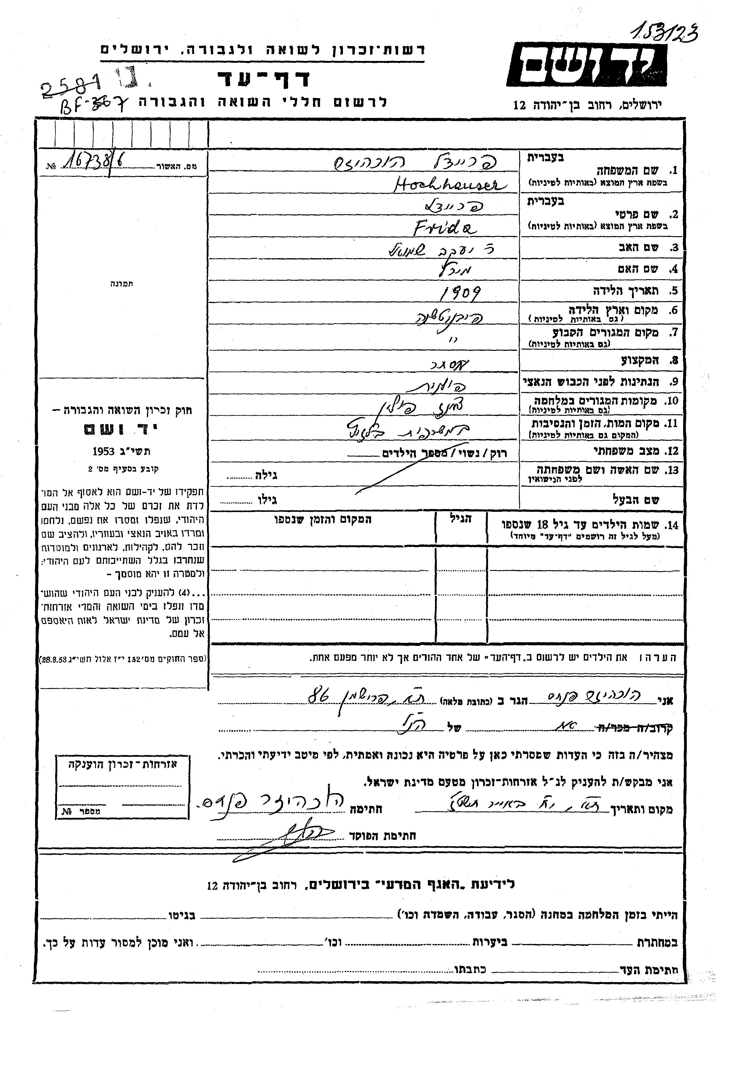 Hochhauser Freidel Frida 1909 Piwniczna, Poland Page of Testimony