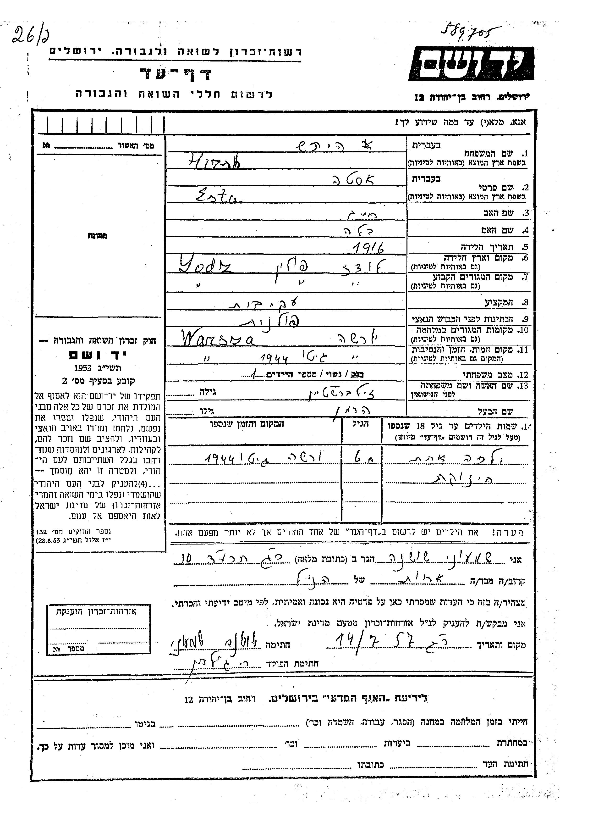 First name unknown Hirsch was born to Herman and Esta nee Zilbershtein. Was child. Prior to WWII lived in Lodz, Poland. During the war was in Warszawa, Poland. Was murdered in the Shoah.
