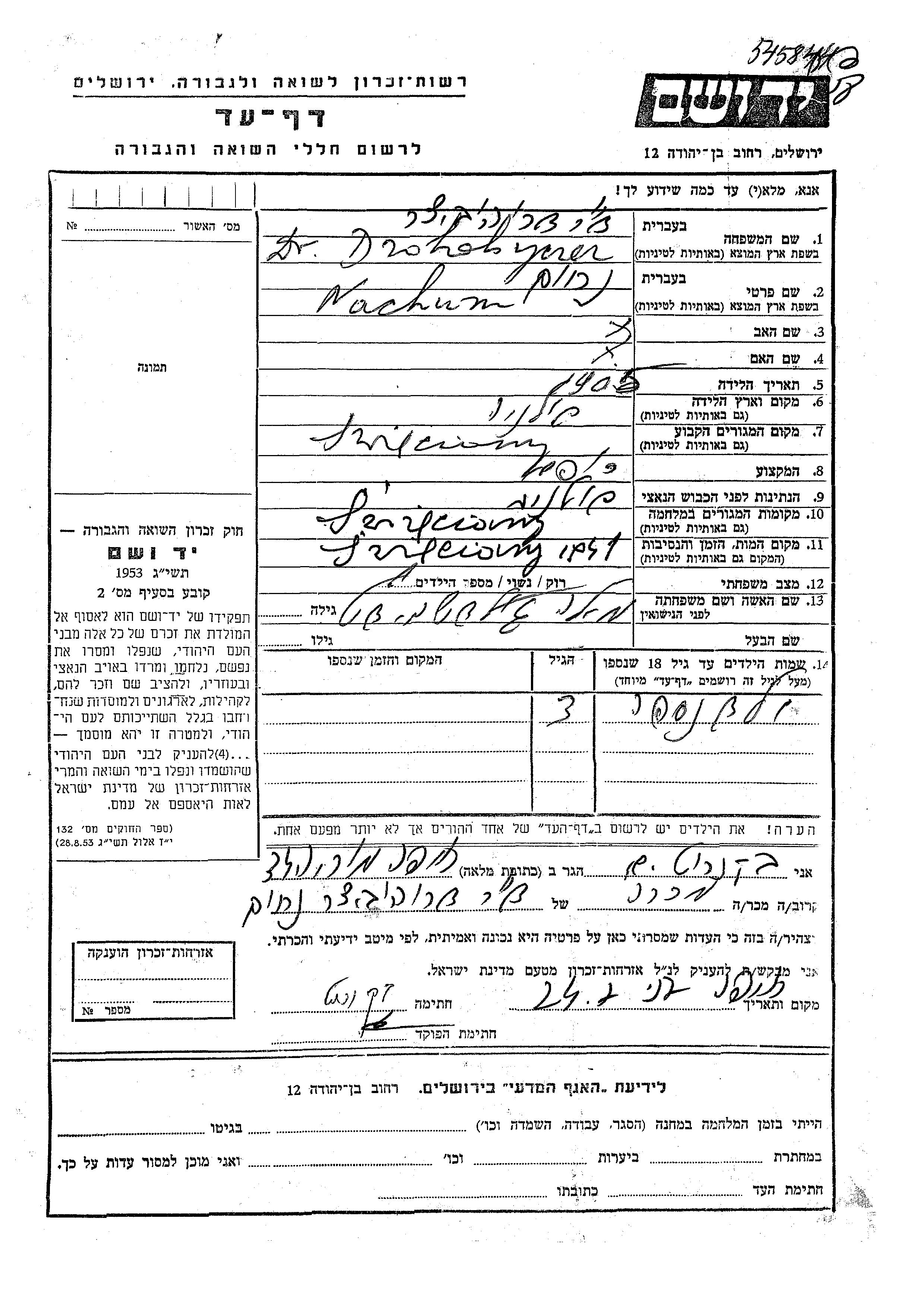Yad Vashem - Pages of Testimony Names Memorial Collection