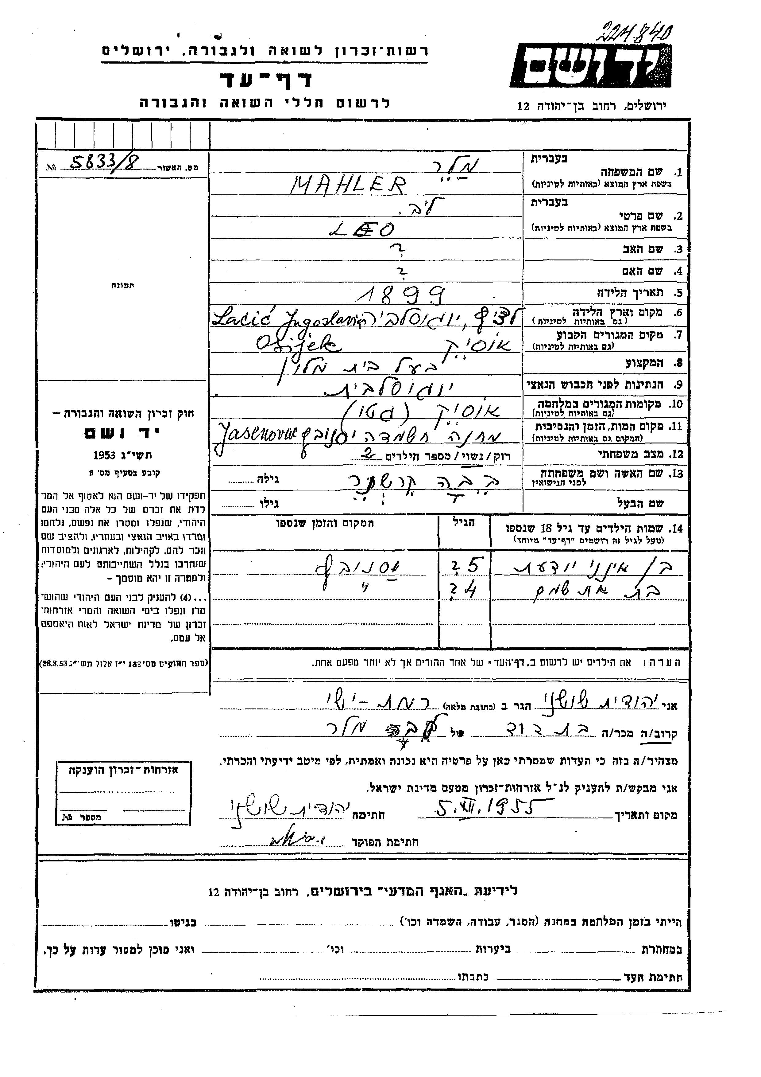 Search by name of Prewar permanent residence, Town, Village, District, Region or Country.