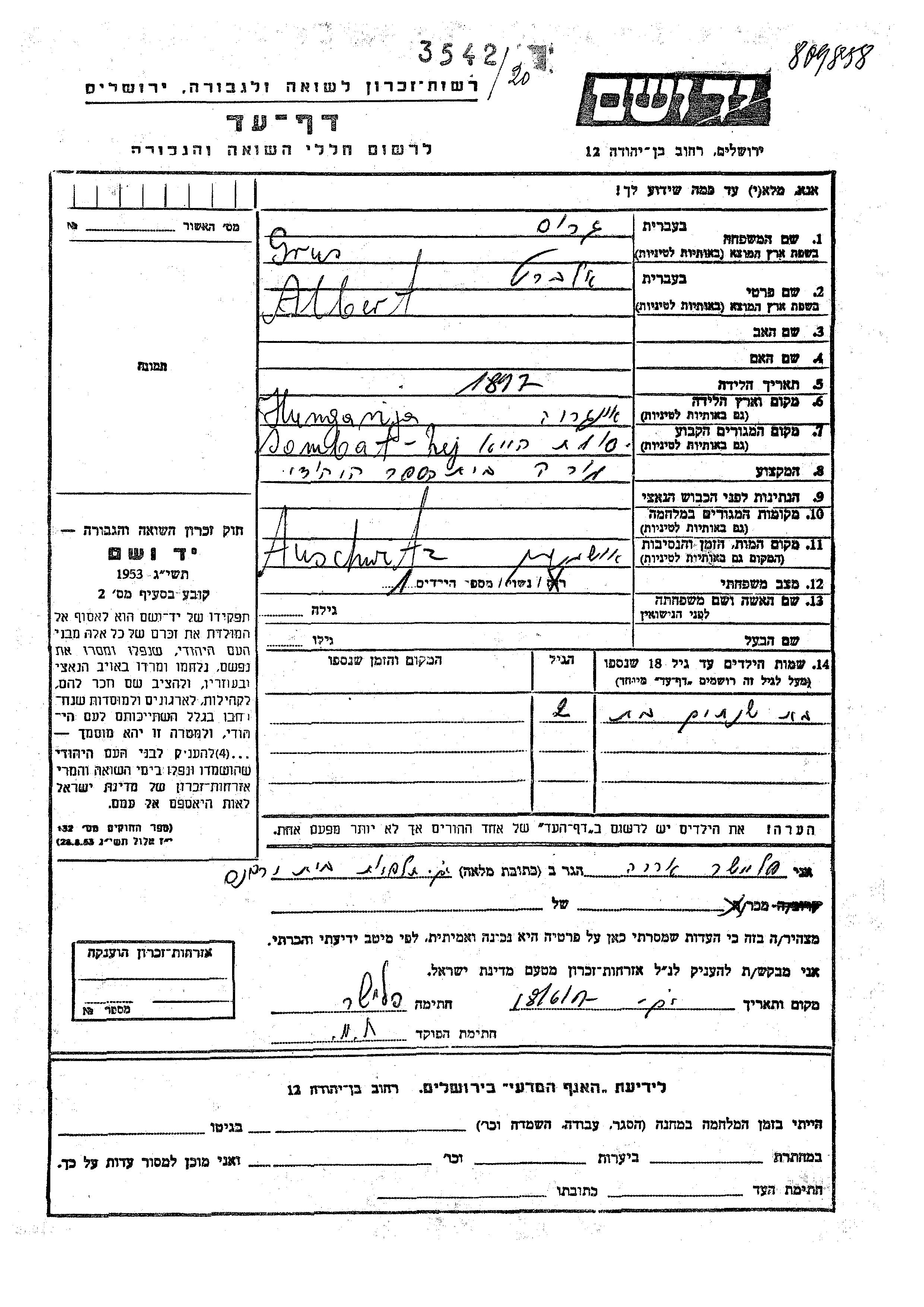 Yad Vashem - Pages of Testimony Names Memorial Collection