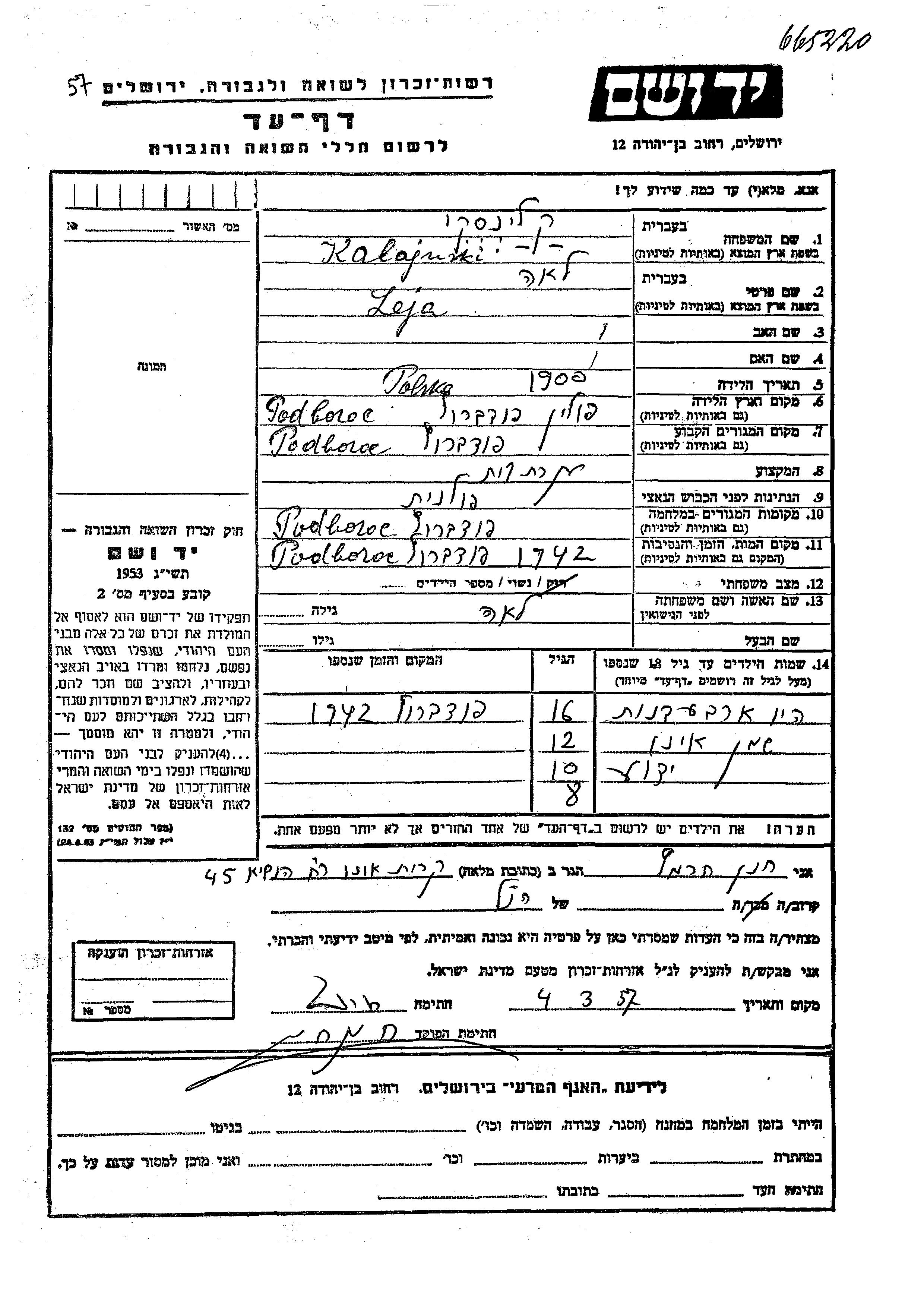 Yad Vashem - Pages of Testimony Names Memorial Collection