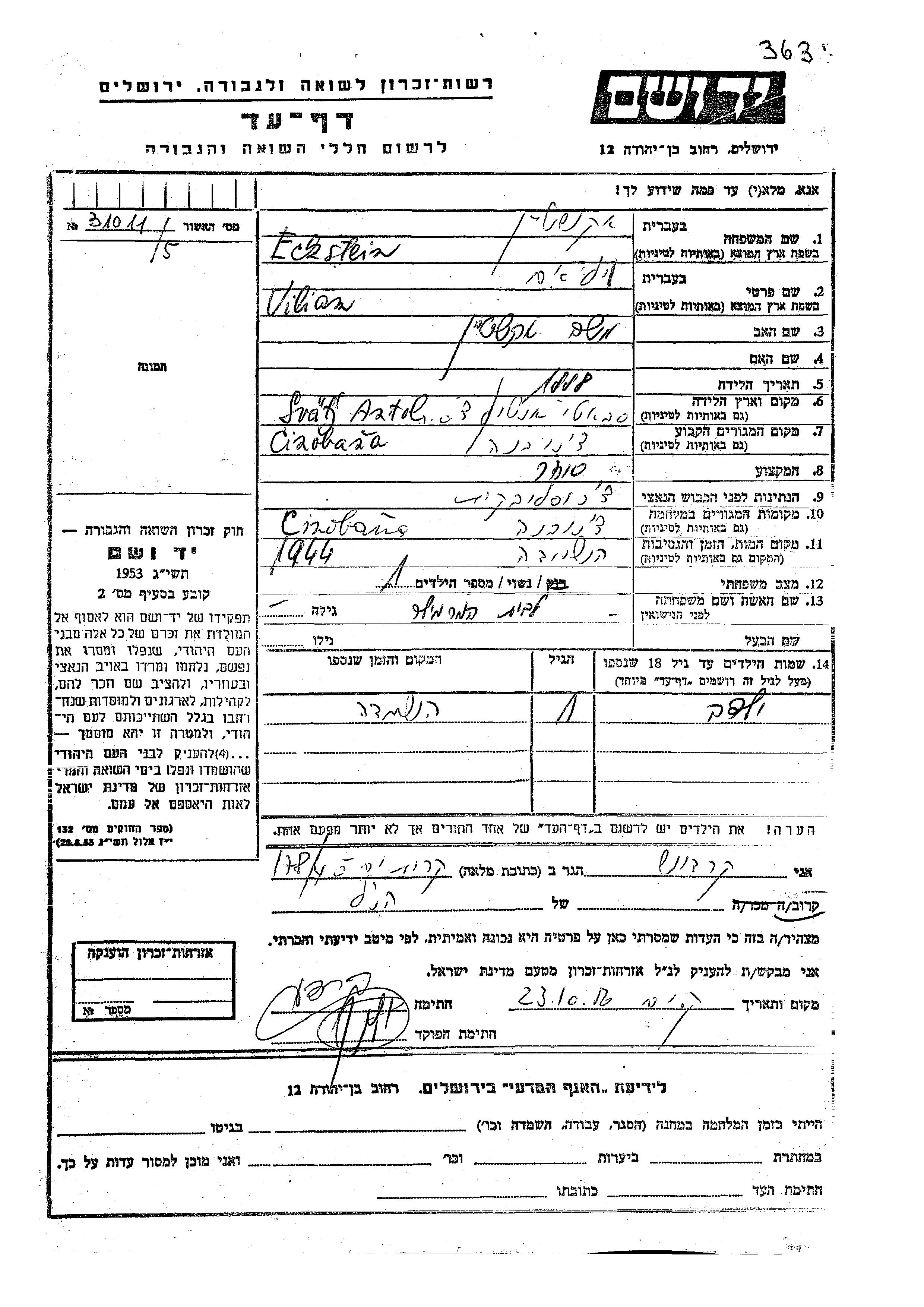 Yad Vashem - Pages of Testimony Names Memorial Collection