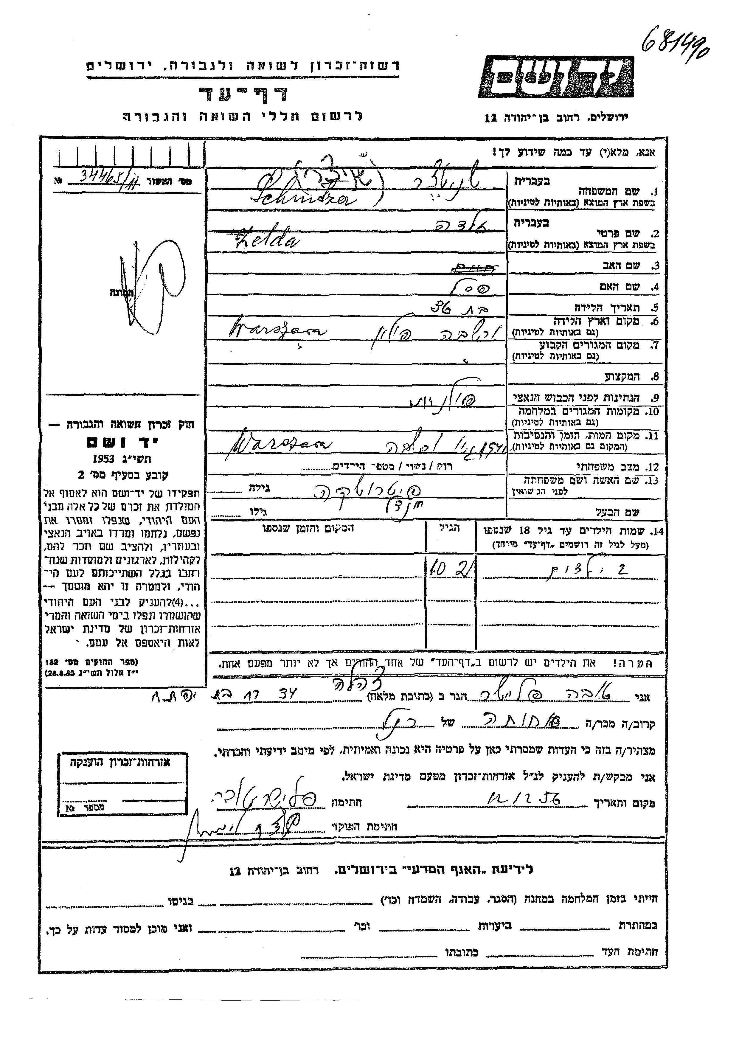 Yad Vashem - Pages of Testimony Names Memorial Collection