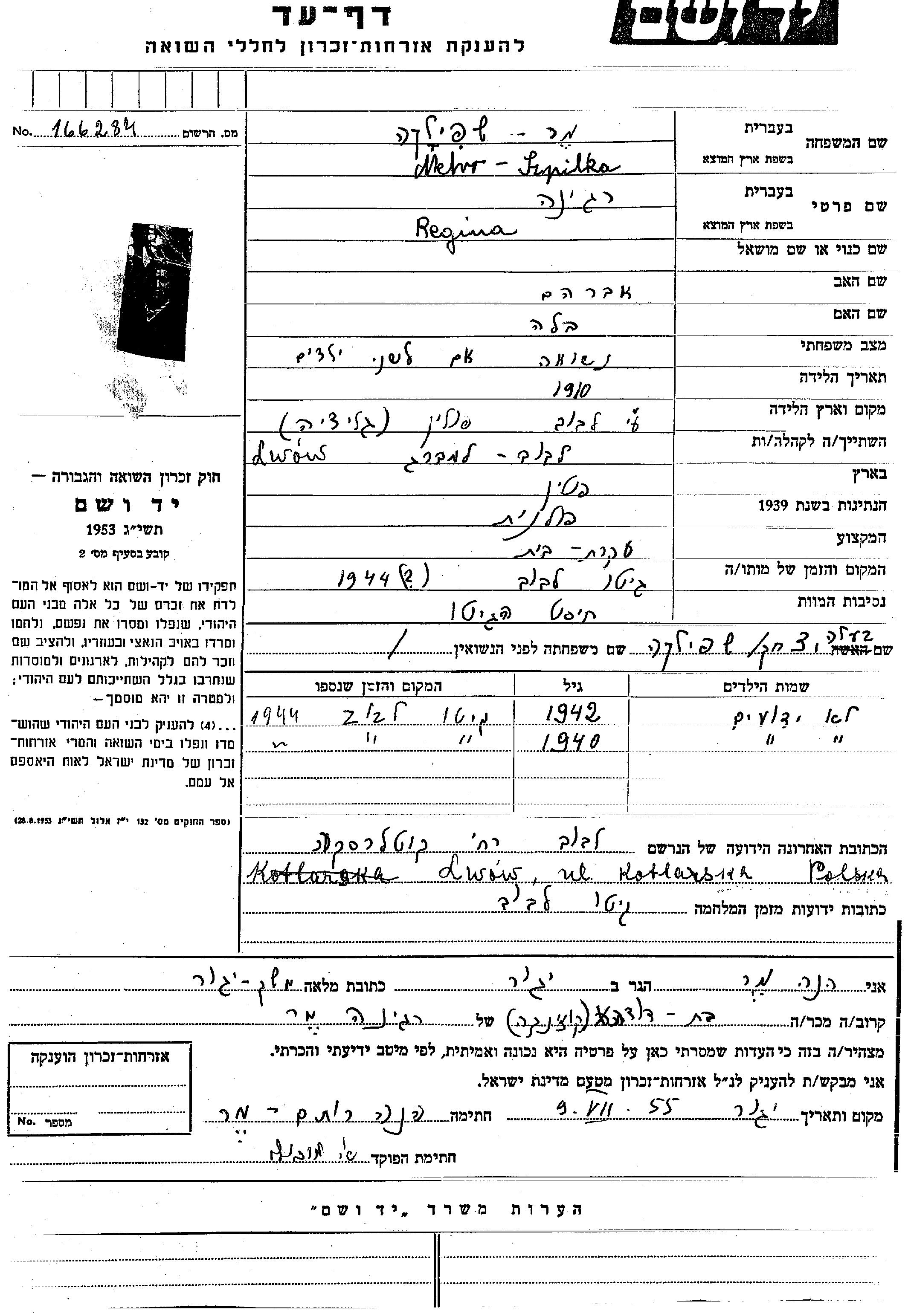 Szpilka First name unknown 1940 Lwow, Poland Page of Testimony