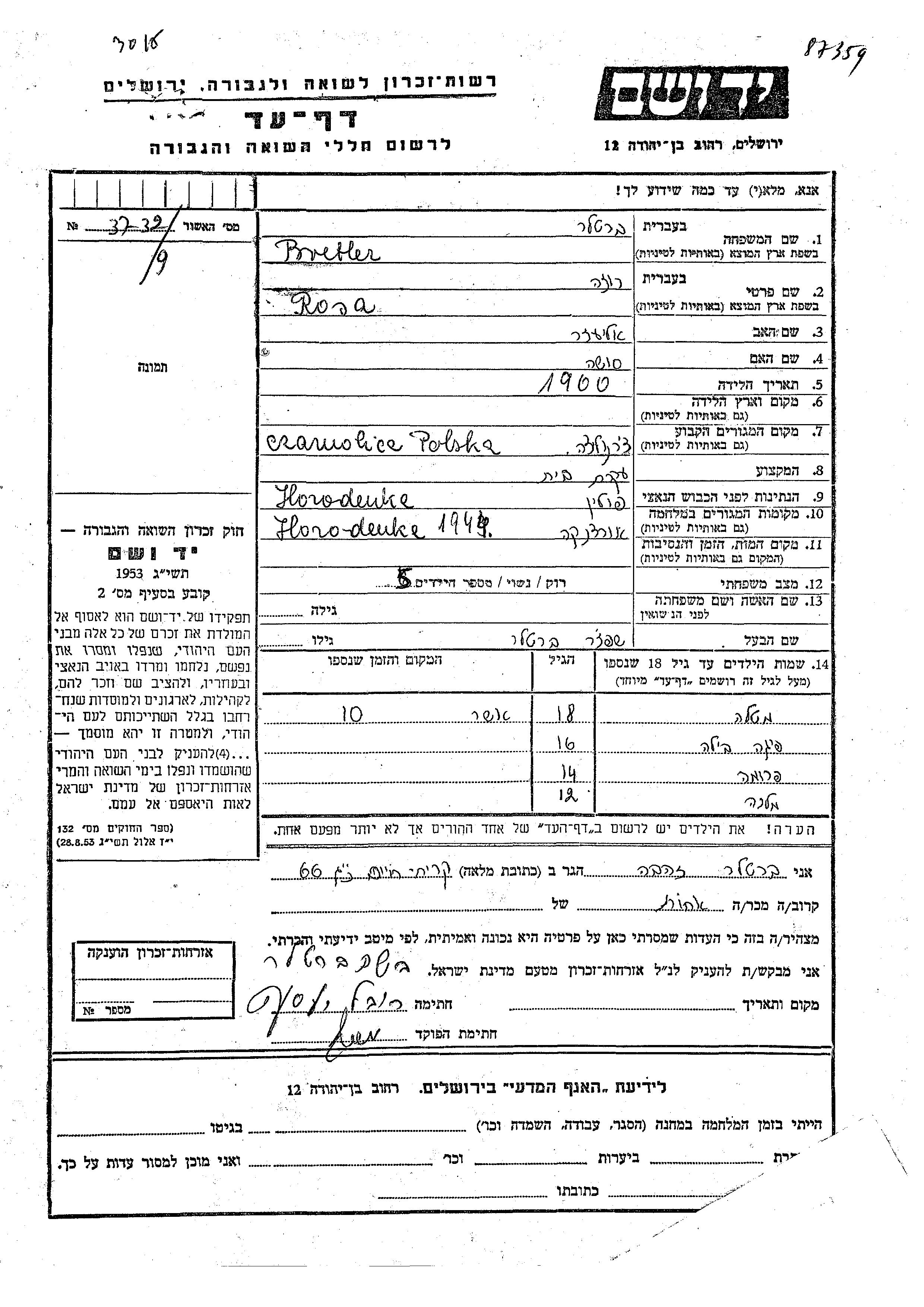 Bretler Rosa 1900 Czarnolica, Poland Page of Testimony
