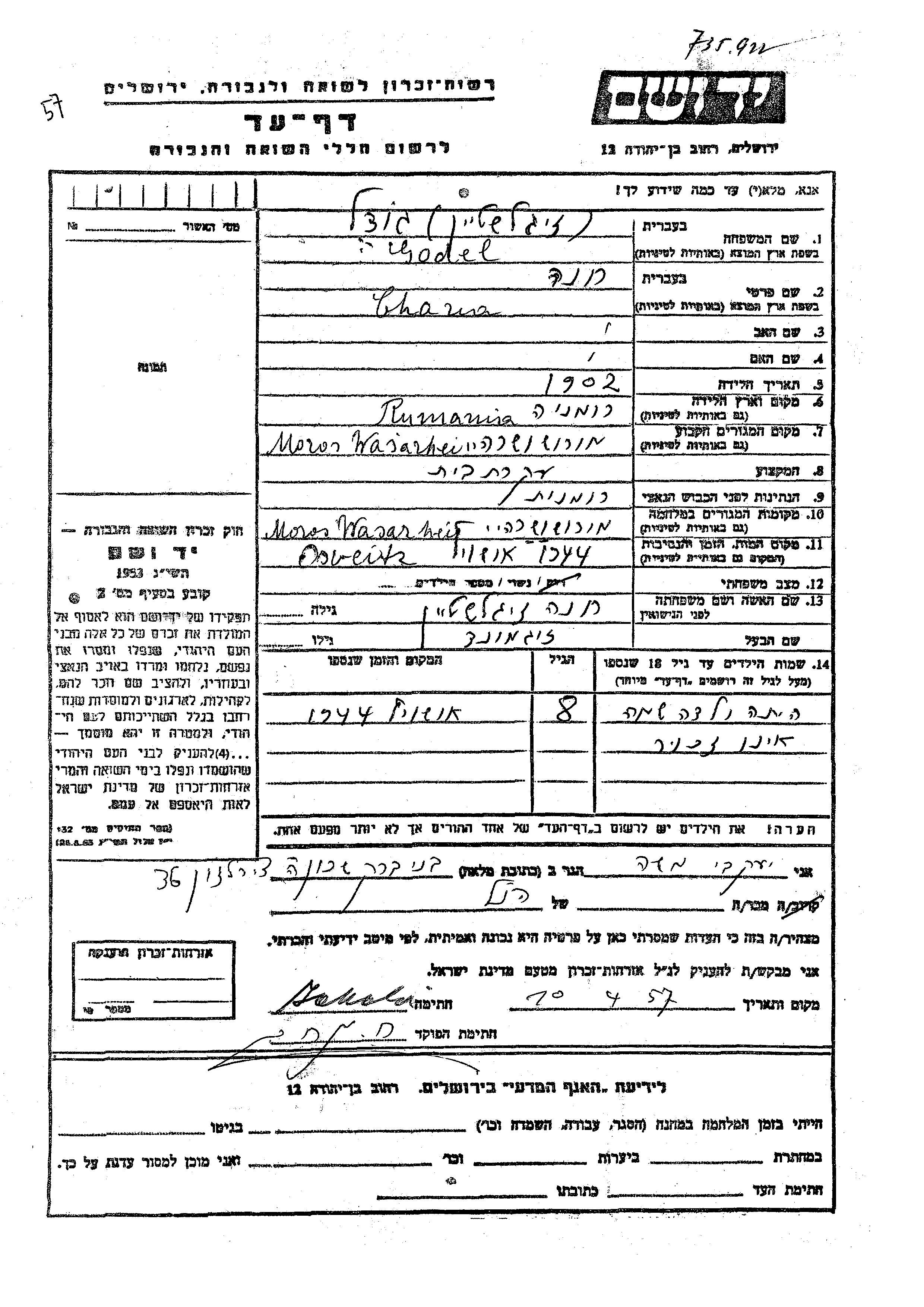 Godel First name unknown Moros Wasarhej, Romania Page of Testimony