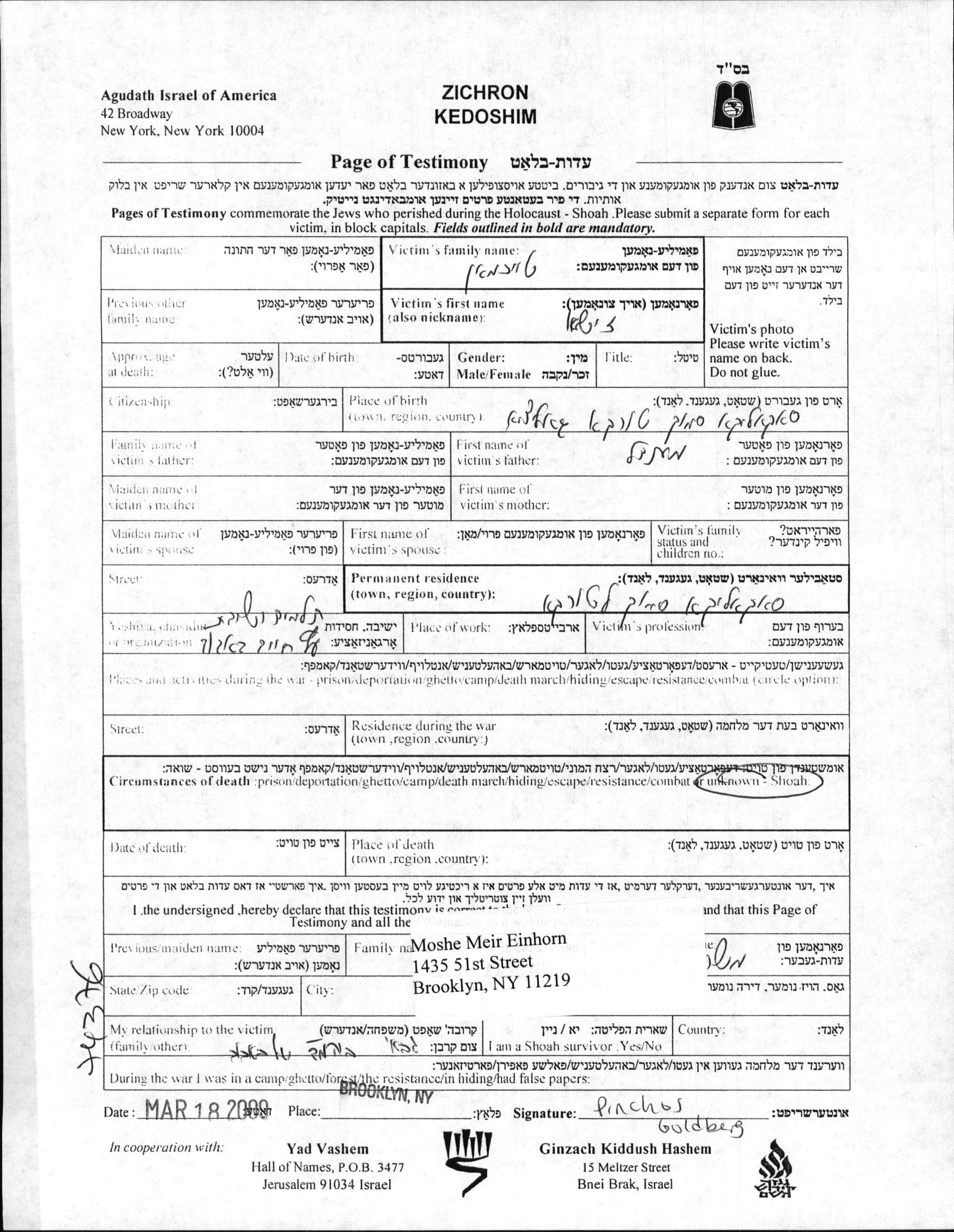 Yad Vashem - Pages of Testimony Names Memorial Collection