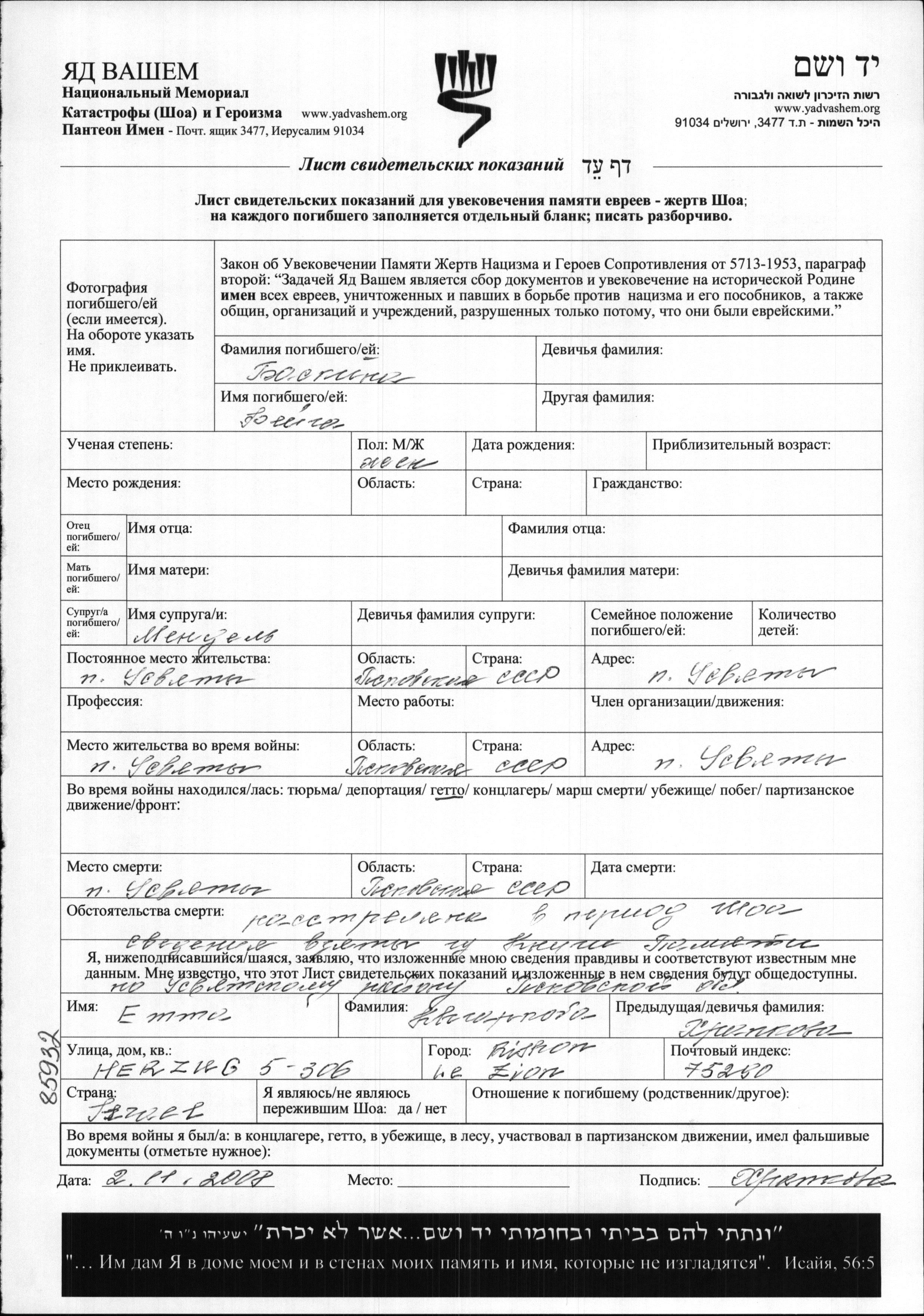Feiga Baskina. She was married to Mendel. Prior to WWII she lived in Usvyaty, Russia (USSR). During the war she was in Usvyaty, Russia (USSR). Feiga was murdered in the Shoah. Place of death: Usvyaty, Russia (USSR).