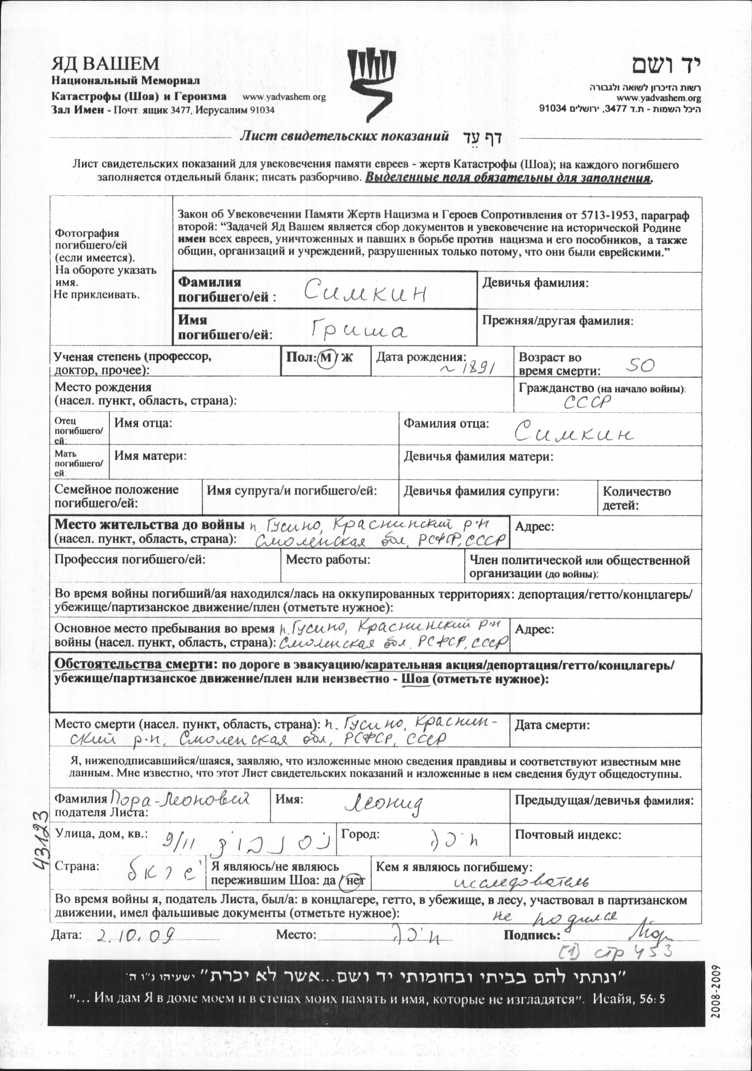 Search by last name of the submitter of the Page of Testimony, including diminutives or nicknames