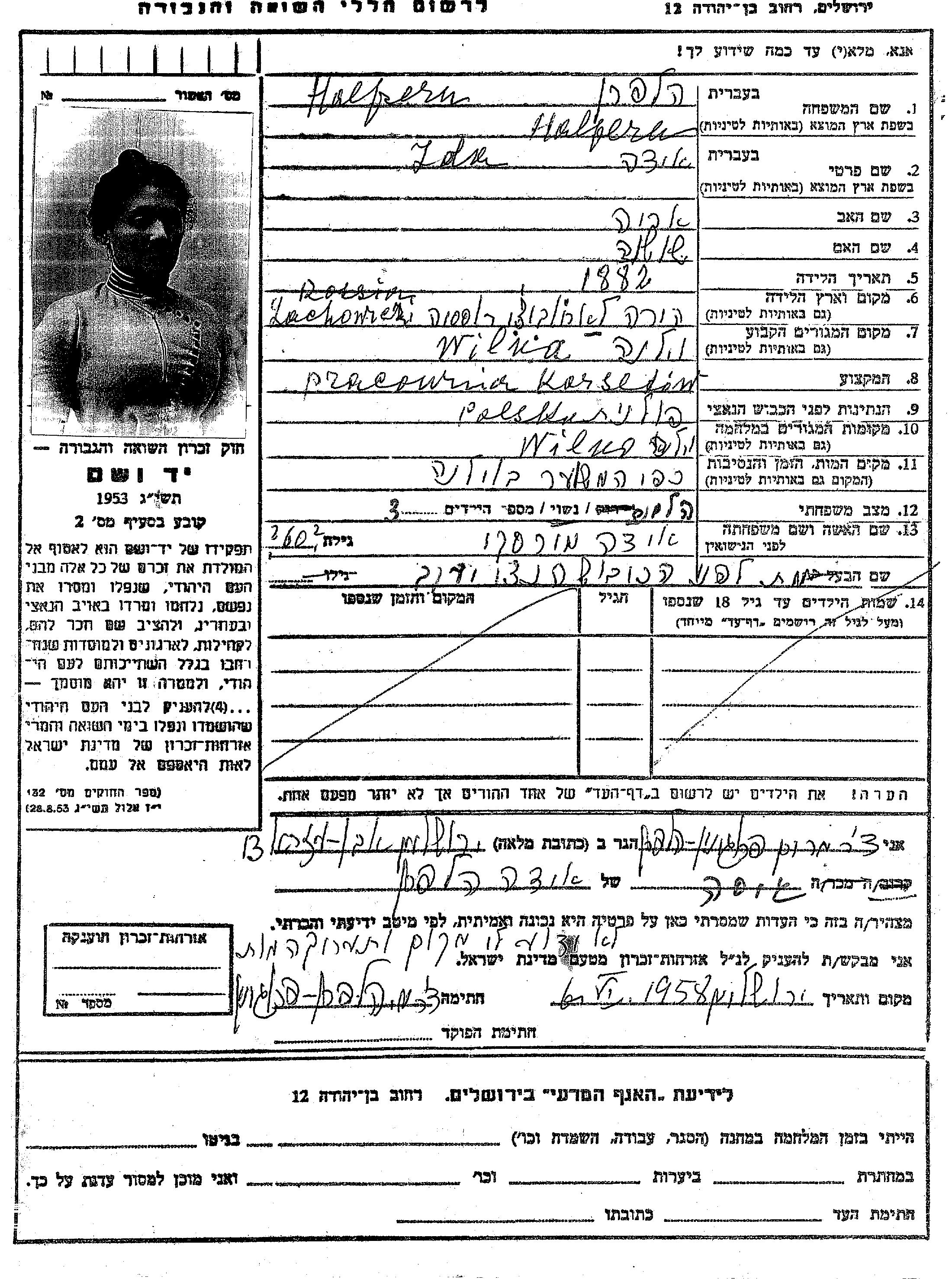 Halpern Ida 1882 Wilna, Poland Page of Testimony