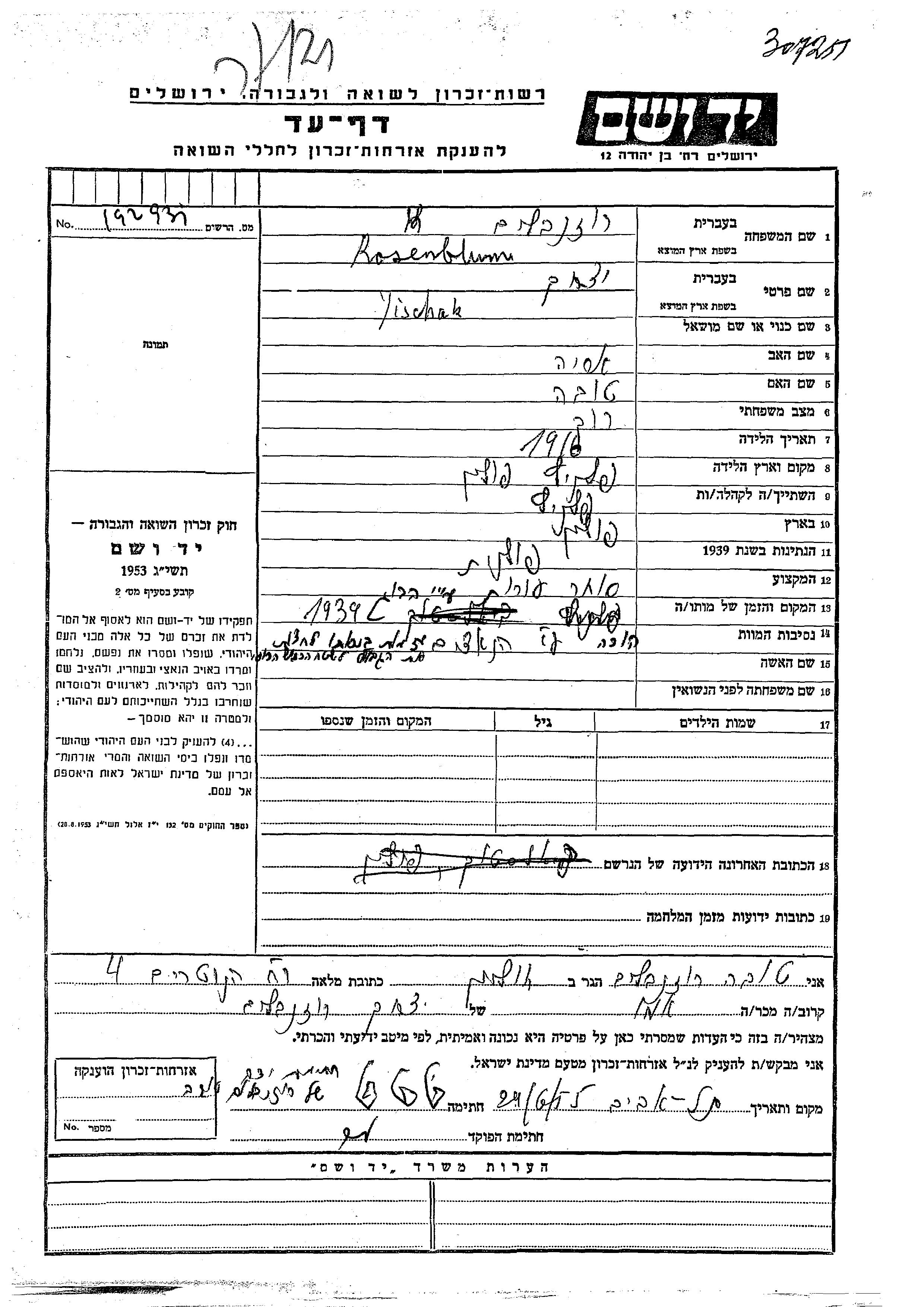 Search by name of Prewar permanent residence, Town, Village, District, Region or Country.