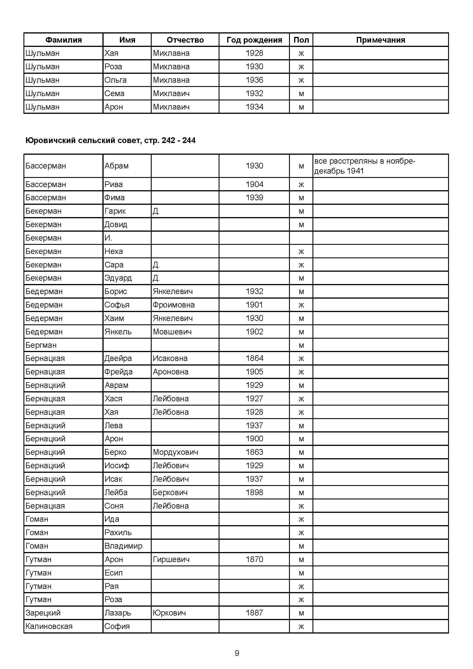 Bernatzkaya Sonya Yurovichi, Belorussia (USSR) List of persecuted persons