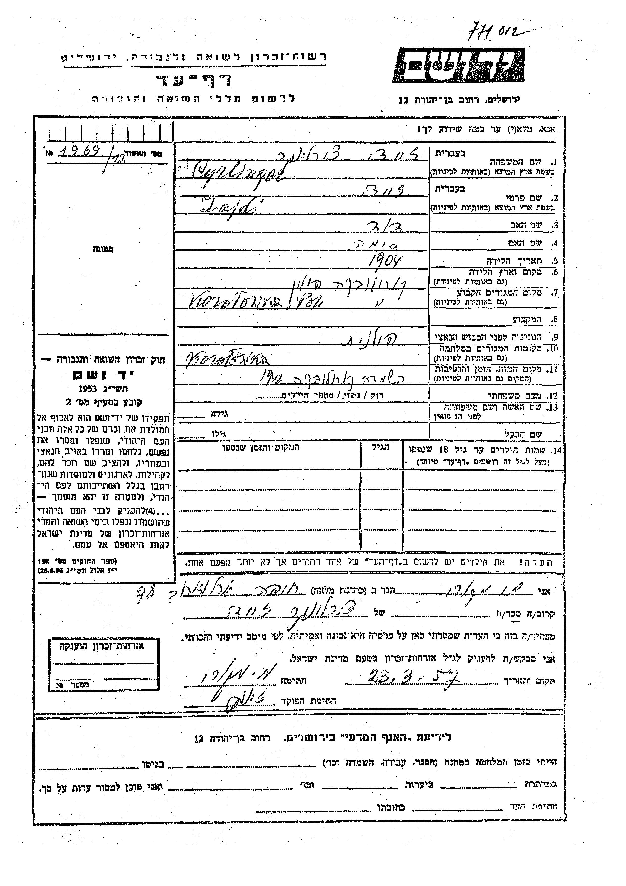 Yad Vashem - Pages of Testimony Names Memorial Collection