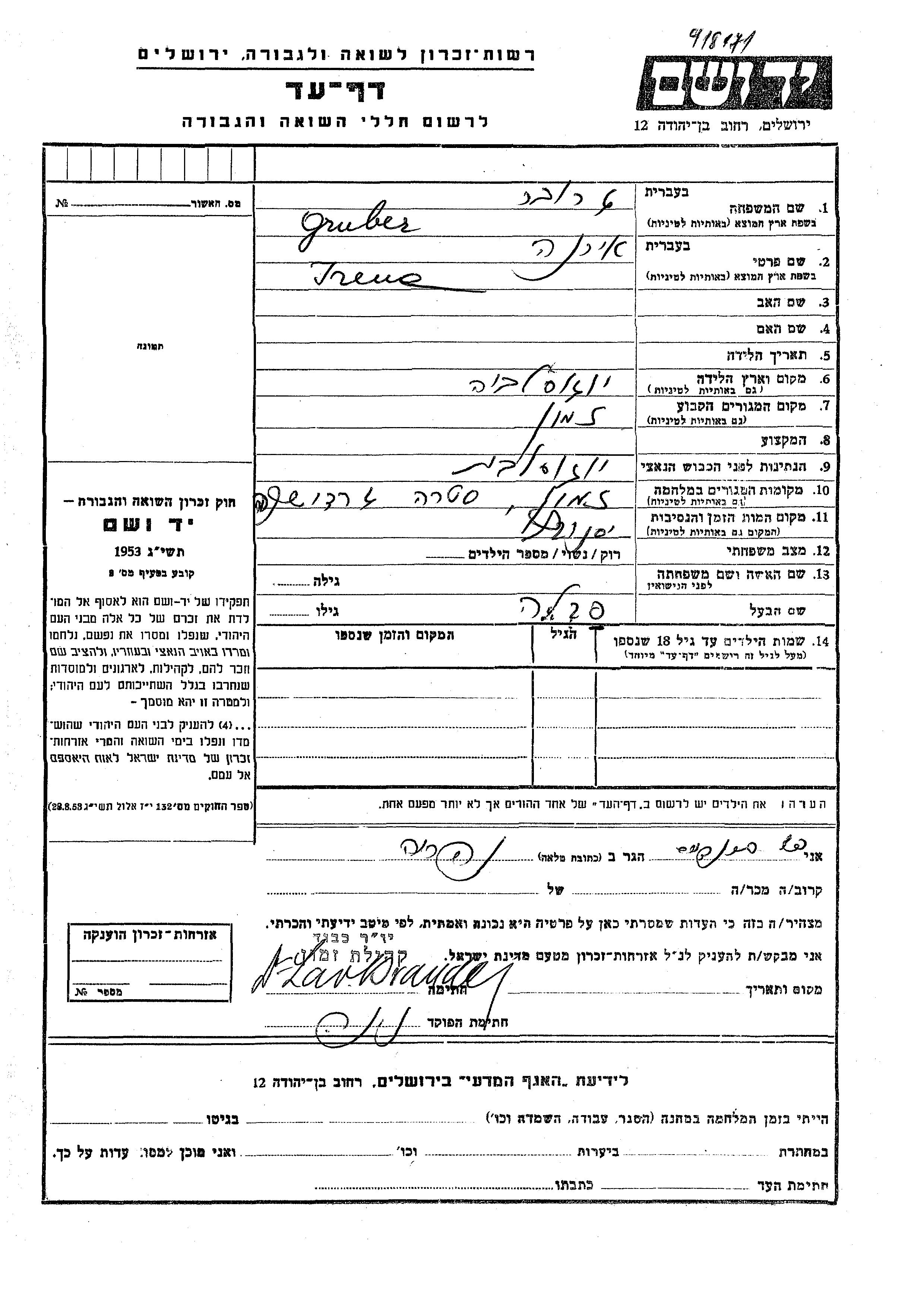 Irene Gruber was born in Yugoslavia. She was married to Pavle. Prior to WWII she lived in Zemun, Yugoslavia. During the war she was in Zemun, Yugoslavia. Irene was murdered in the Shoah. Place of death: Jasenovac, Yugoslavia.