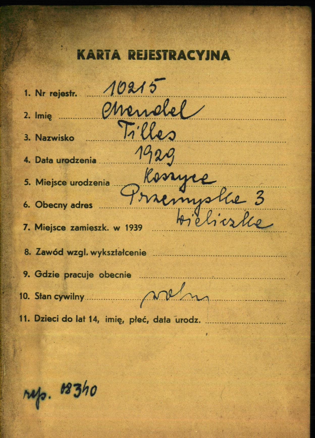 Mendel Tilles was born in Koszyce, Poland, 1929. He was single. Prior to WWII he lived in Wieliczka, Poland.