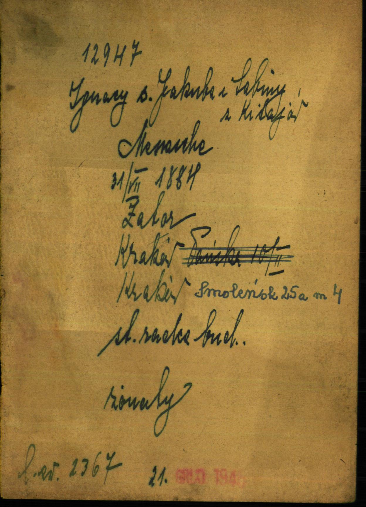 Ignacy Menasche was born in Zator, Poland, 1884 to Jakub and Sabina. He was married. Prior to WWII he lived in Krakow, Poland.