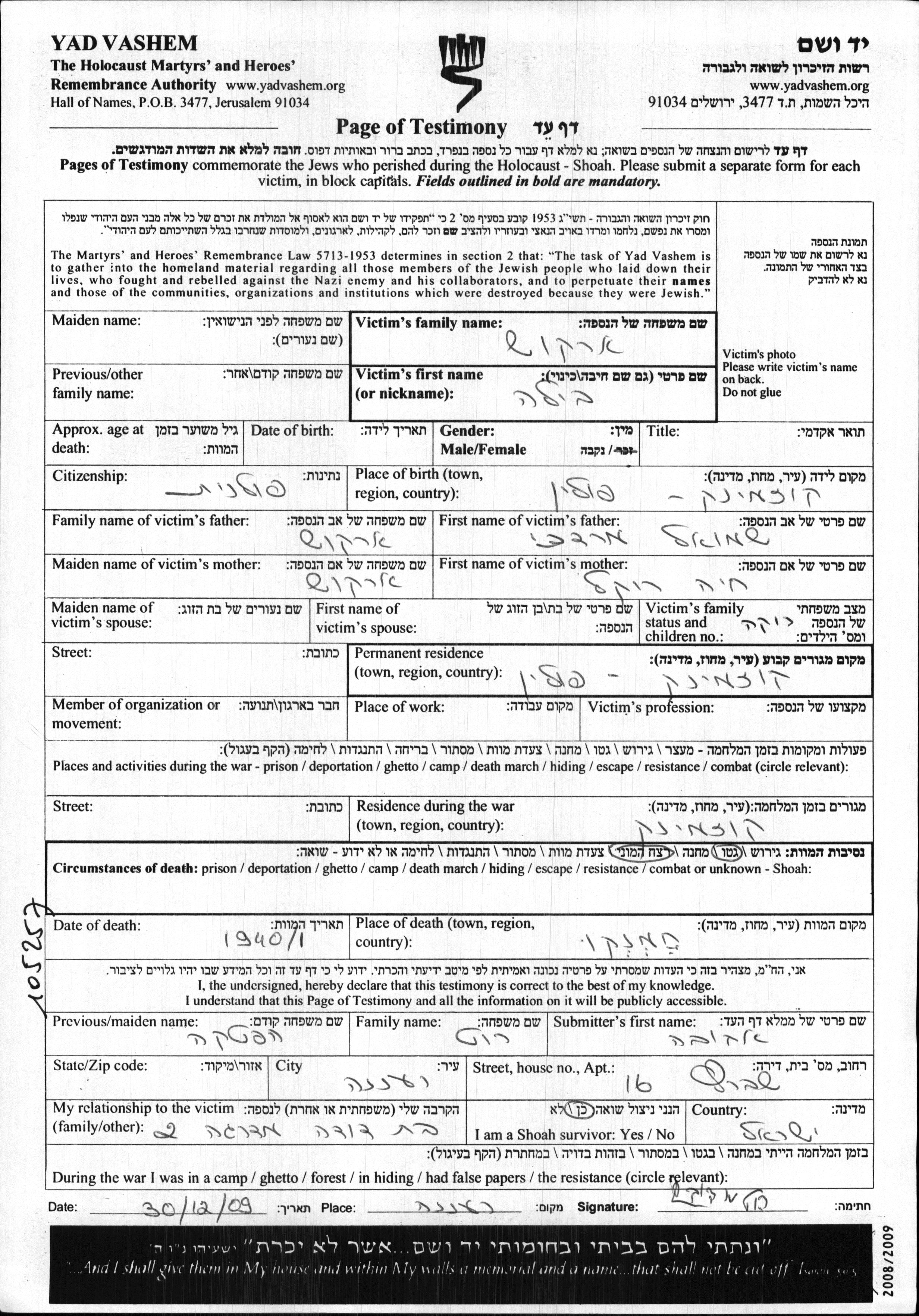 Bila Arkush was born in Kozminek, Poland to Shmuel Mordekhai and Chaia Rika. She was single. Prior to WWII she lived in Kozminek, Poland. During the war she was in Kozminek, Poland. Bila was murdered in the Shoah. Place of death: Chelmno, Poland, 1940.