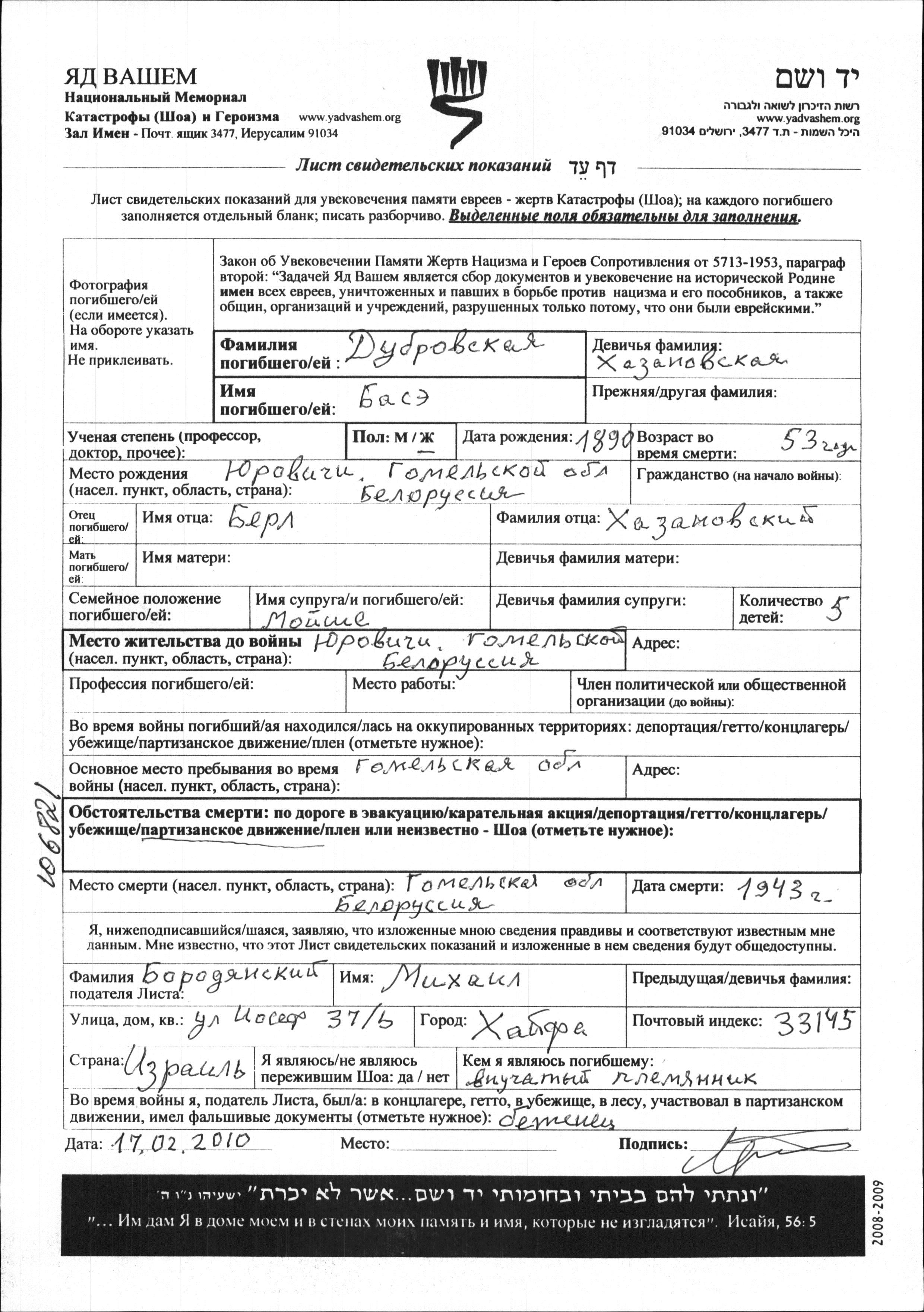 Dubrovskaya Base 1890 Yurovichi, Belorussia (USSR) Page of Testimony