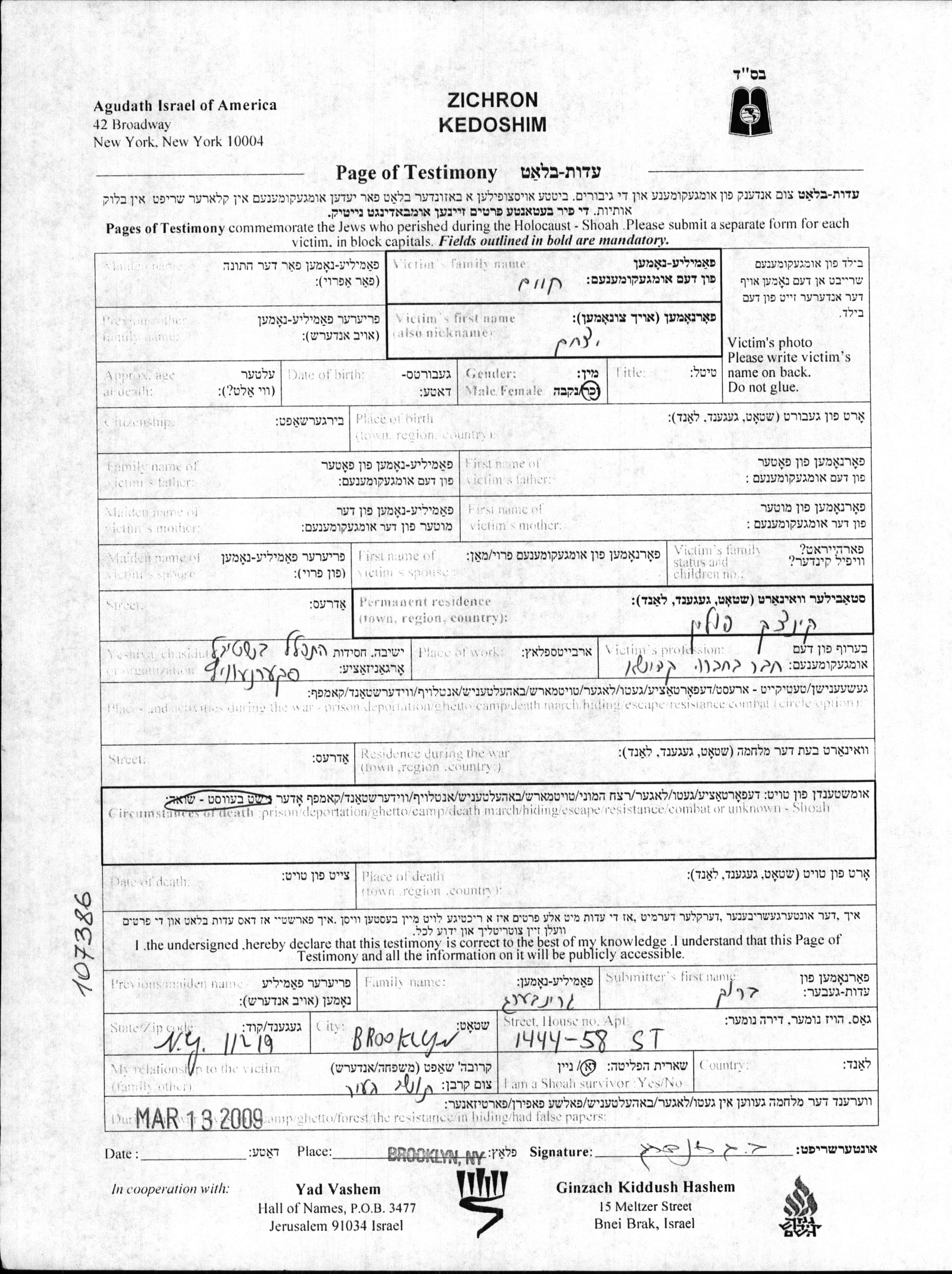 Yad Vashem - Pages of Testimony Names Memorial Collection