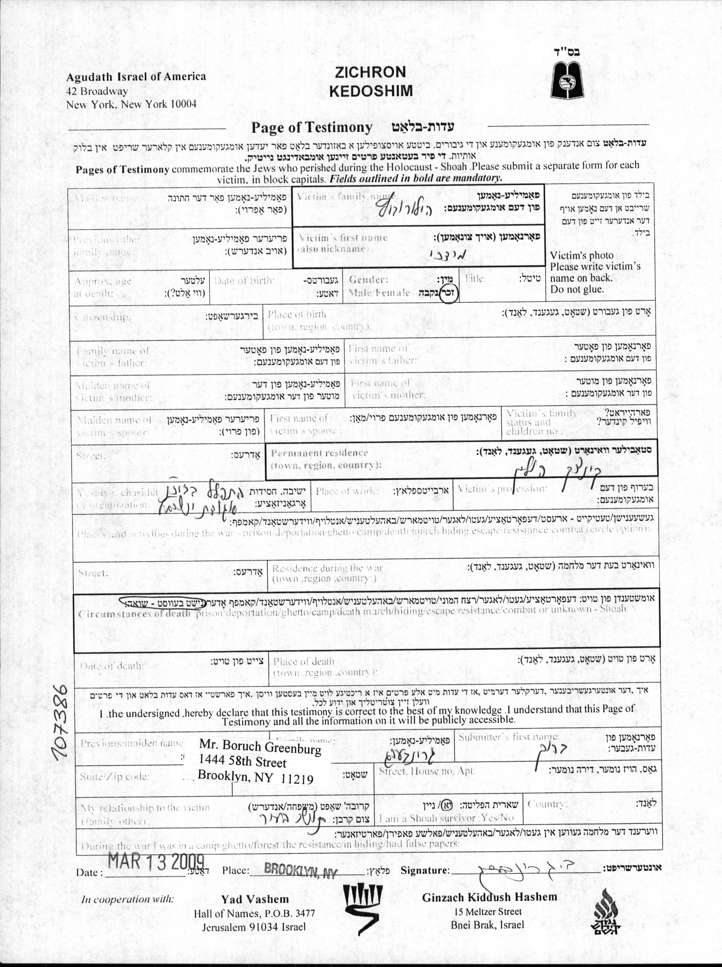 Yad Vashem - Pages of Testimony Names Memorial Collection