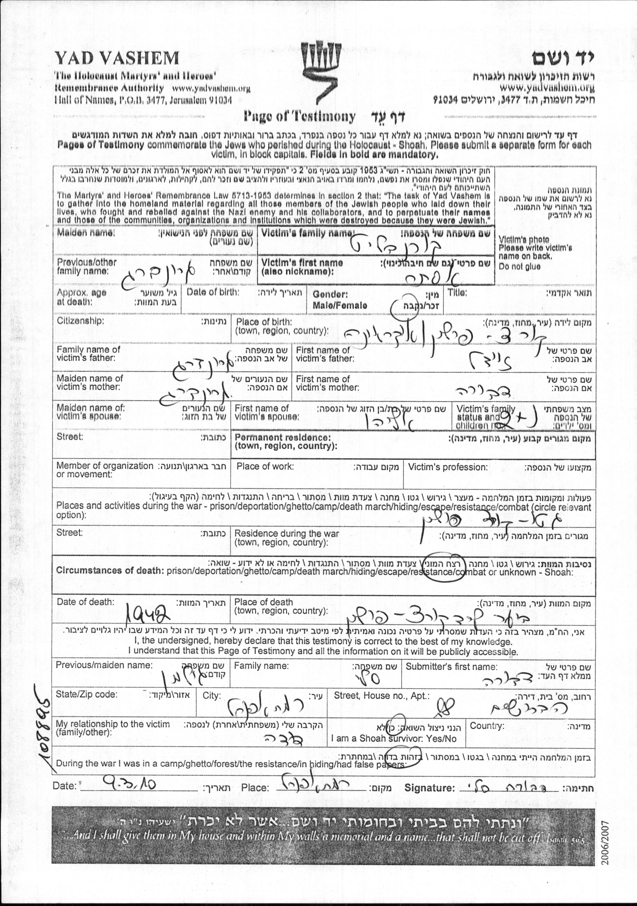 Yad Vashem - Pages of Testimony Names Memorial Collection
