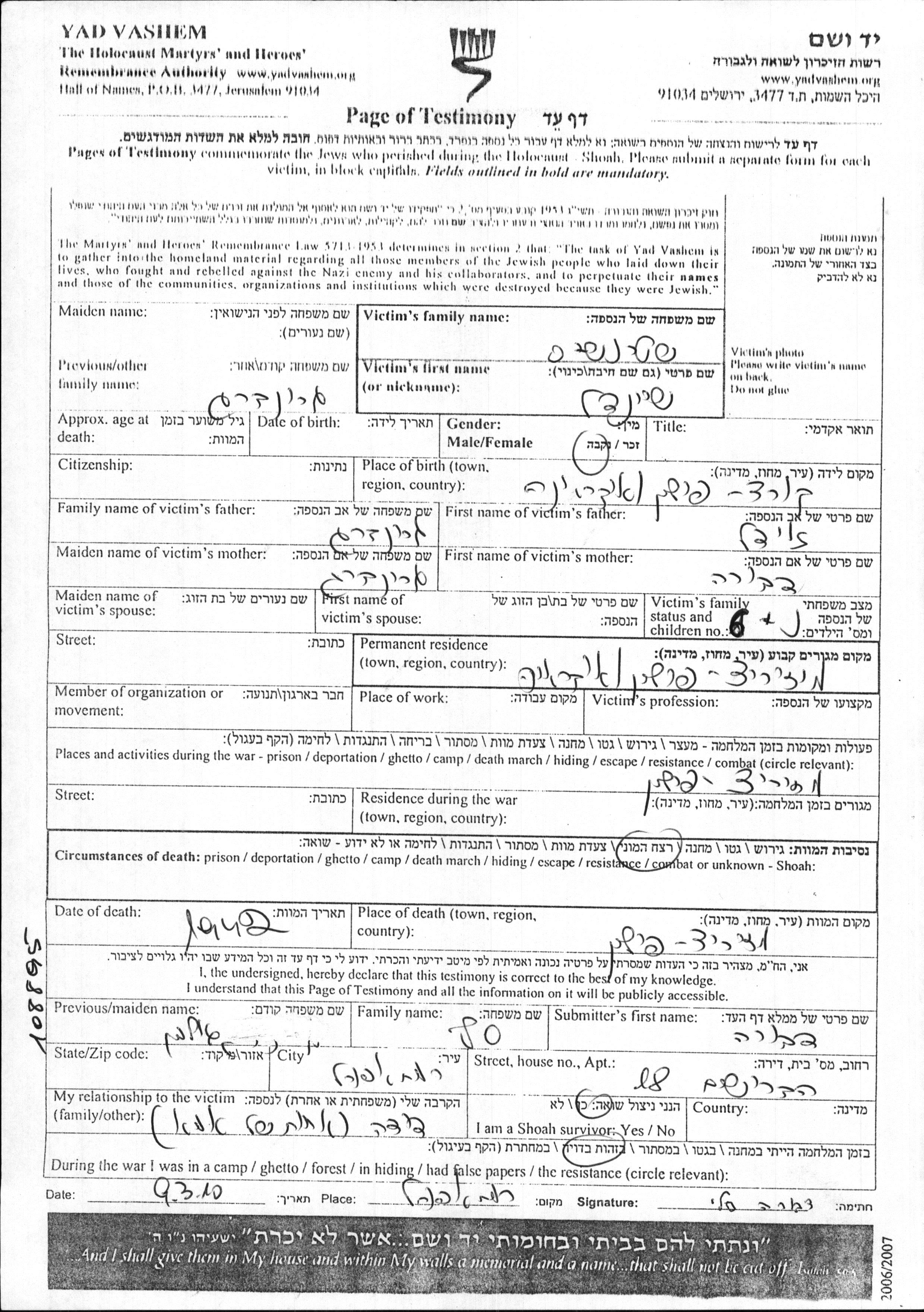 Yad Vashem - Pages of Testimony Names Memorial Collection