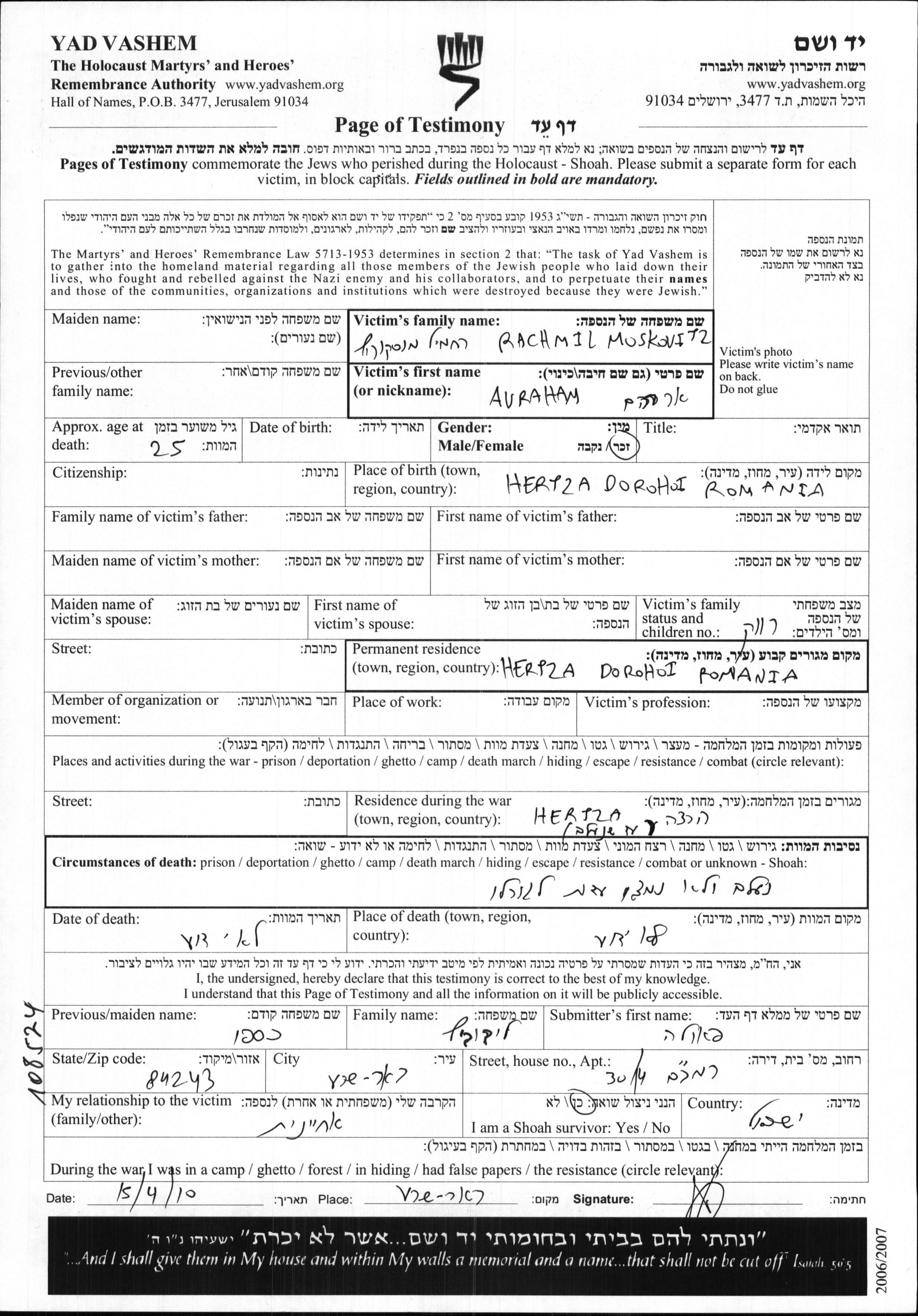 Search by last name of the submitter of the Page of Testimony, including diminutives or nicknames