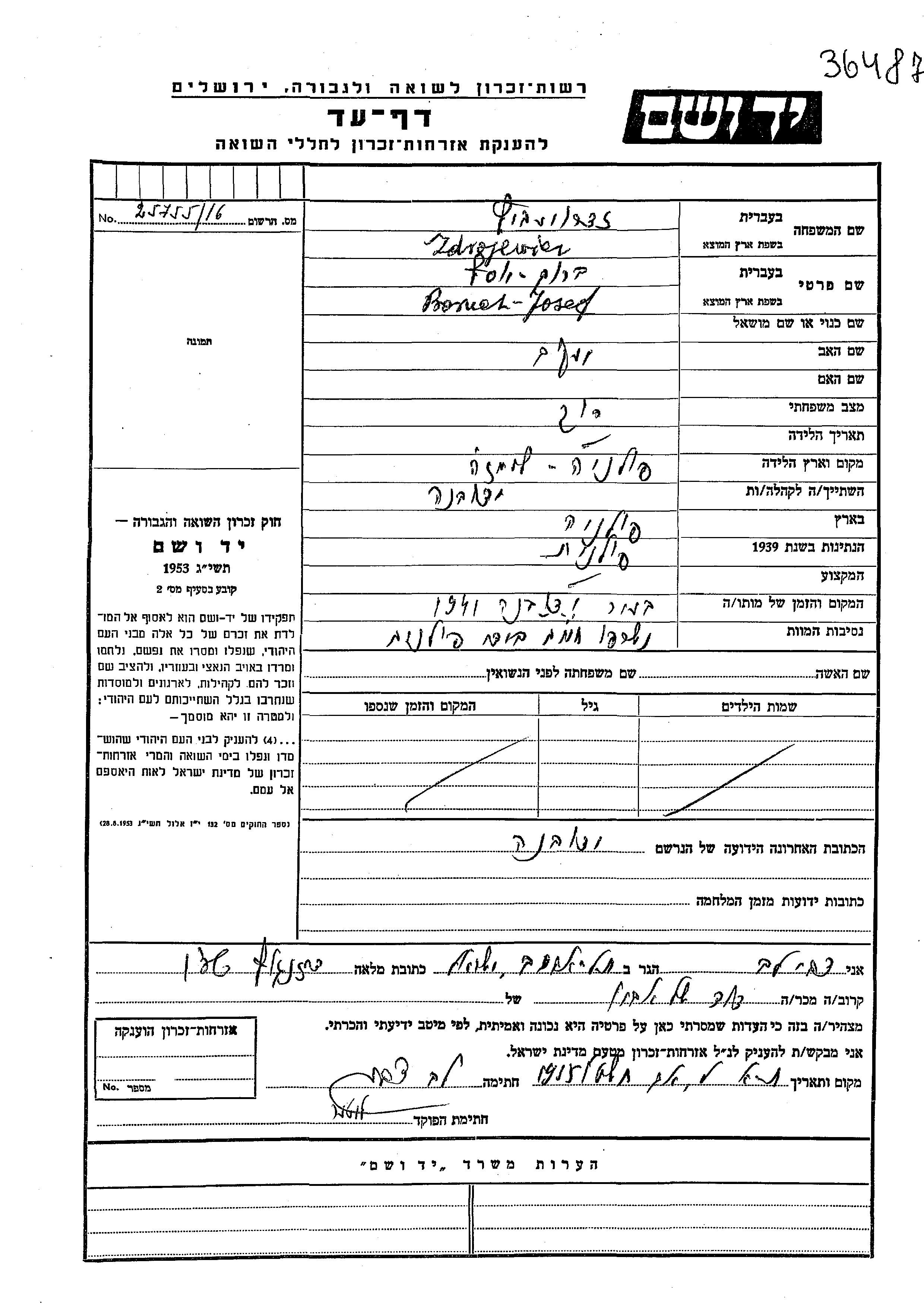 Yad Vashem - Pages of Testimony Names Memorial Collection