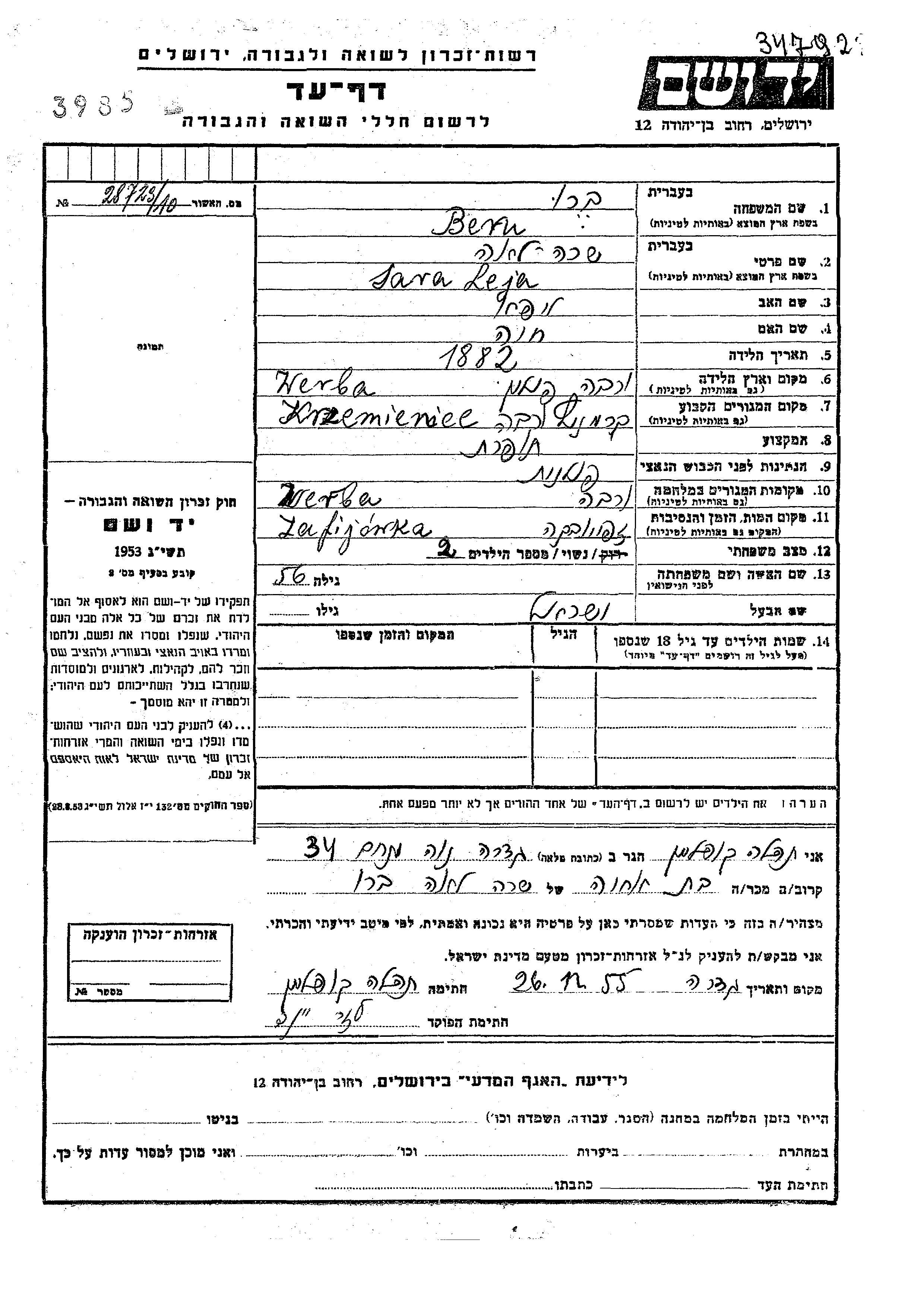 Beru Baru Leja Sara 1882 Krzemieniec, Poland Page of Testimony