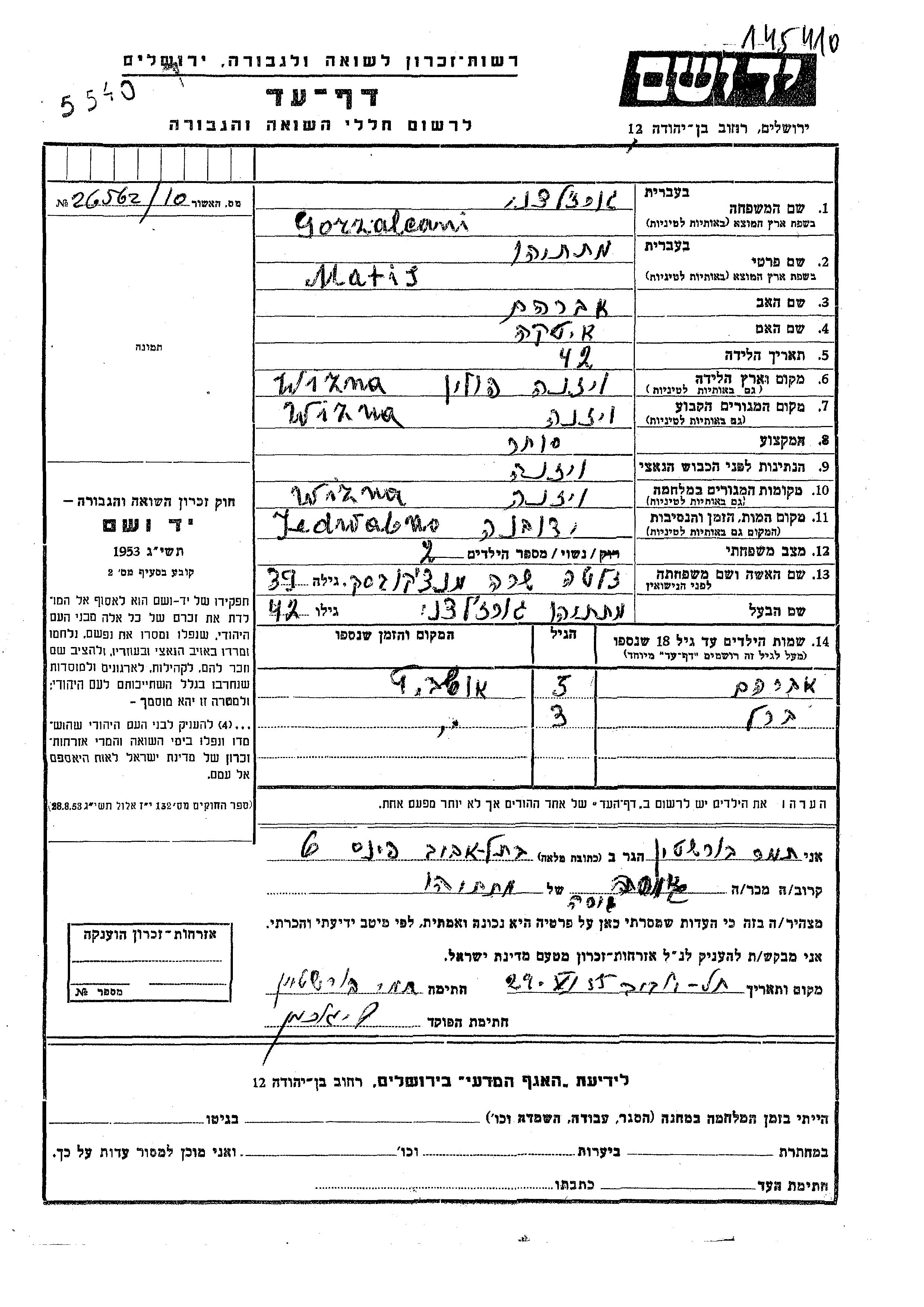 Matis Matatiahu Gorzalcani was born in Wizna, Poland to Avraham and Itka. He was a merchant and married to Zlata Sara nee Menchkovski. Prior to WWII he lived in Wizna, Poland. During the war he was in Wizna, Poland. Matis Matatiahu was murdered in the Shoah. Place of death: Jedwabno, Poland.