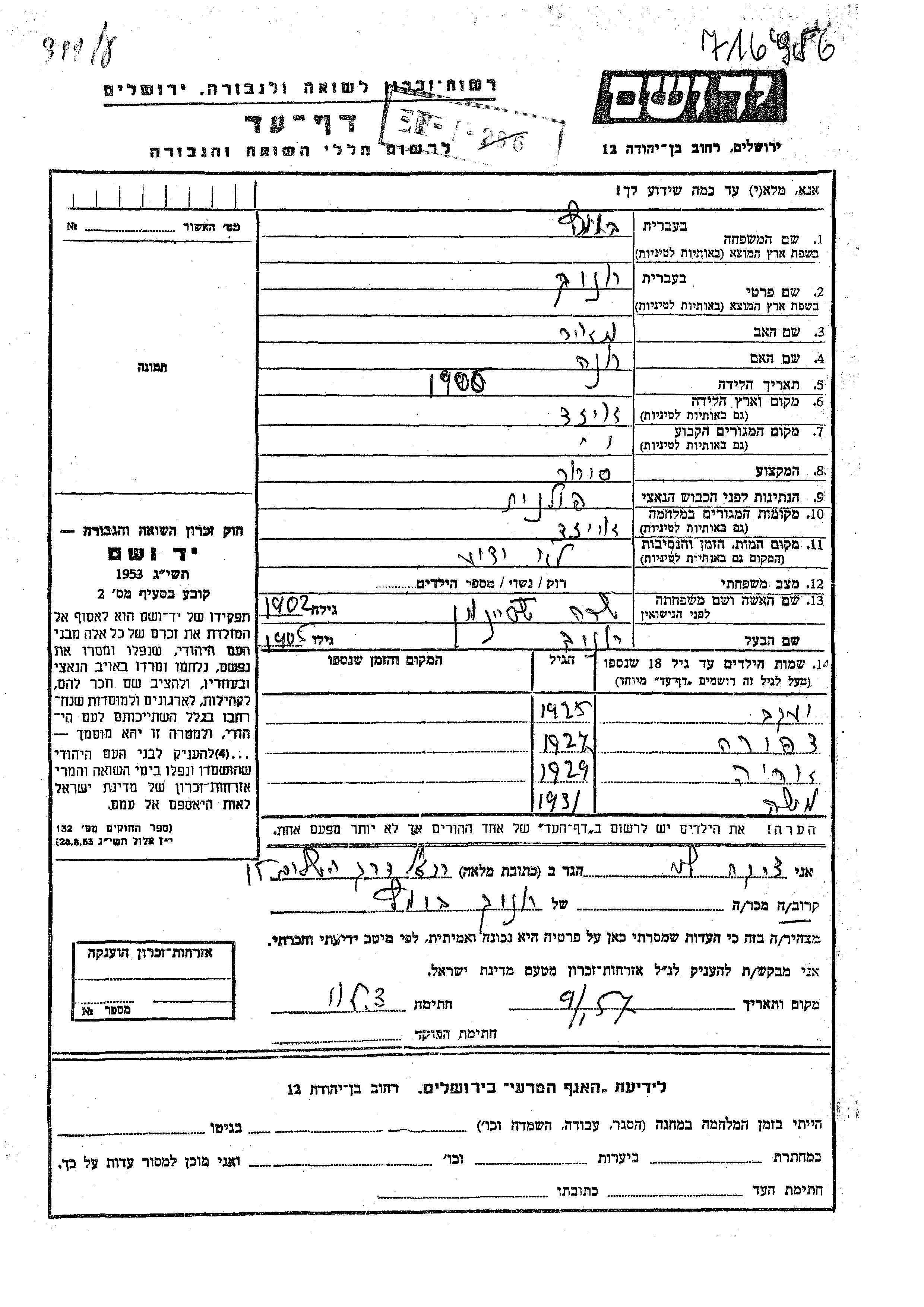 Khanokh Bomatz was born in Ujazd, Poland, 1905 to Meir and Khana. He was a merchant and married to Sara nee Shteinman. Prior to WWII he lived in Ujazd, Poland. During the war he was in Ujazd, Poland. Khanokh was murdered in the Shoah.