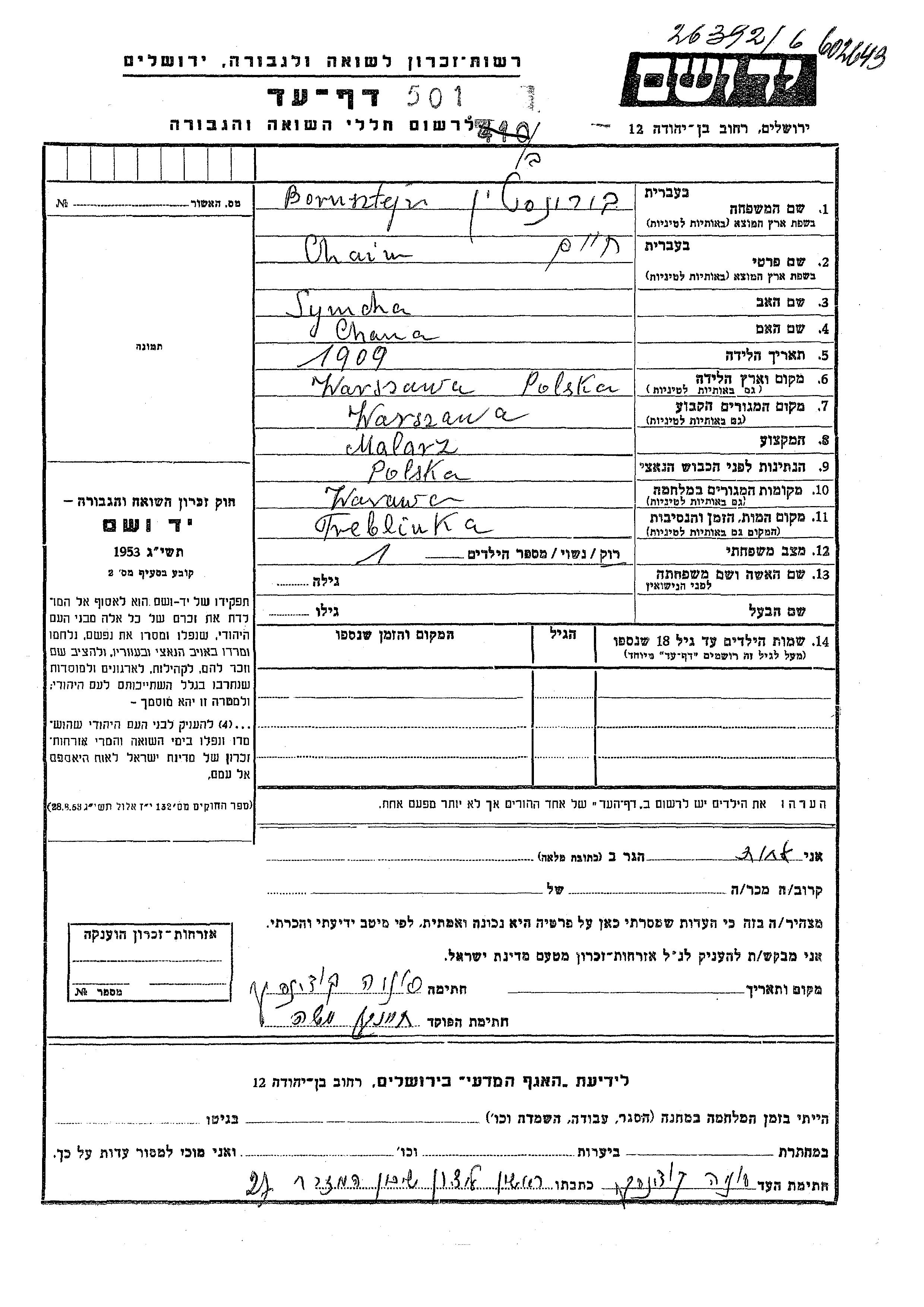 Bornsztejn Chaim 1909 Warszawa, Poland Page of Testimony