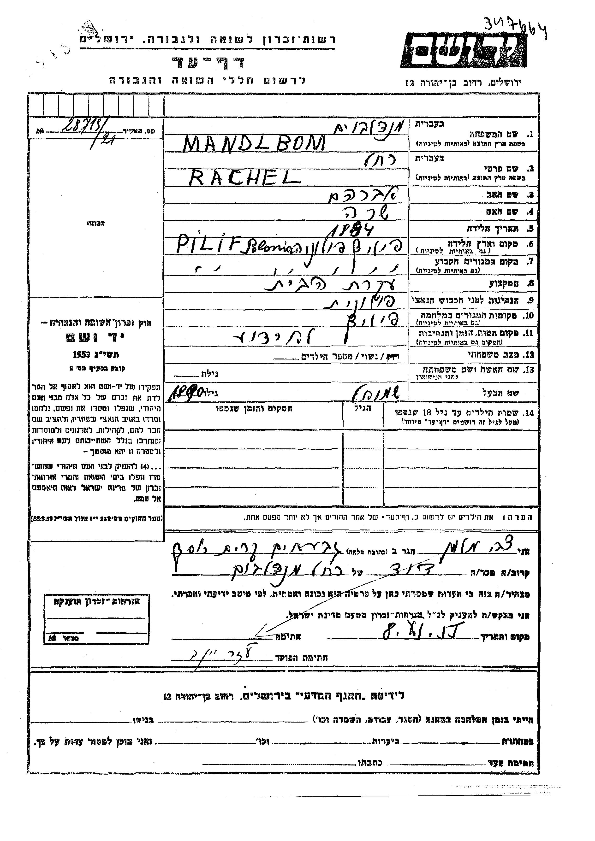 Mandlbom Rachel 1894 Pilif, Poland Page of Testimony