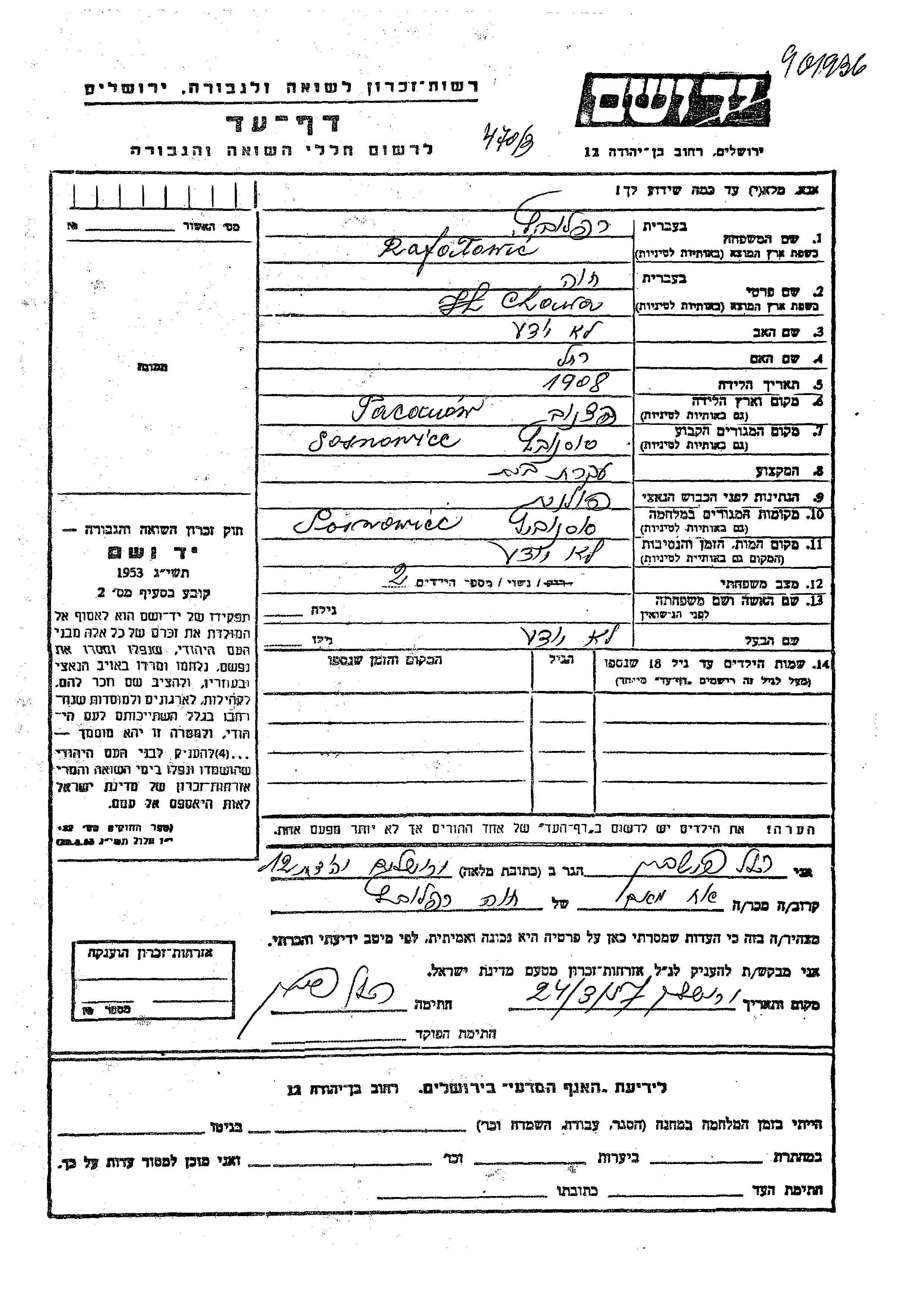 Yad Vashem - Pages of Testimony Names Memorial Collection