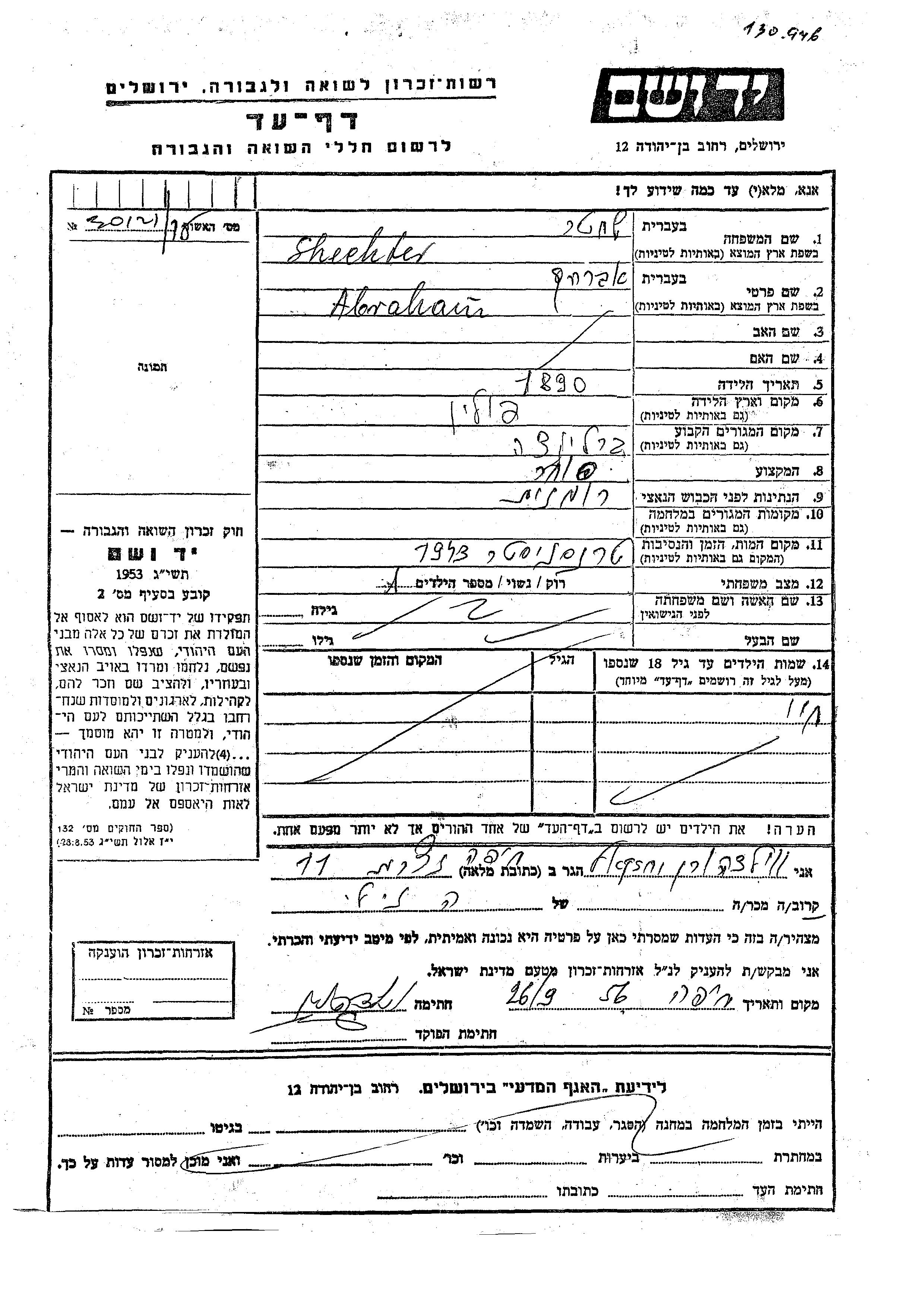 Shechter Abraham 1890 Berlinti, Romania Page of Testimony
