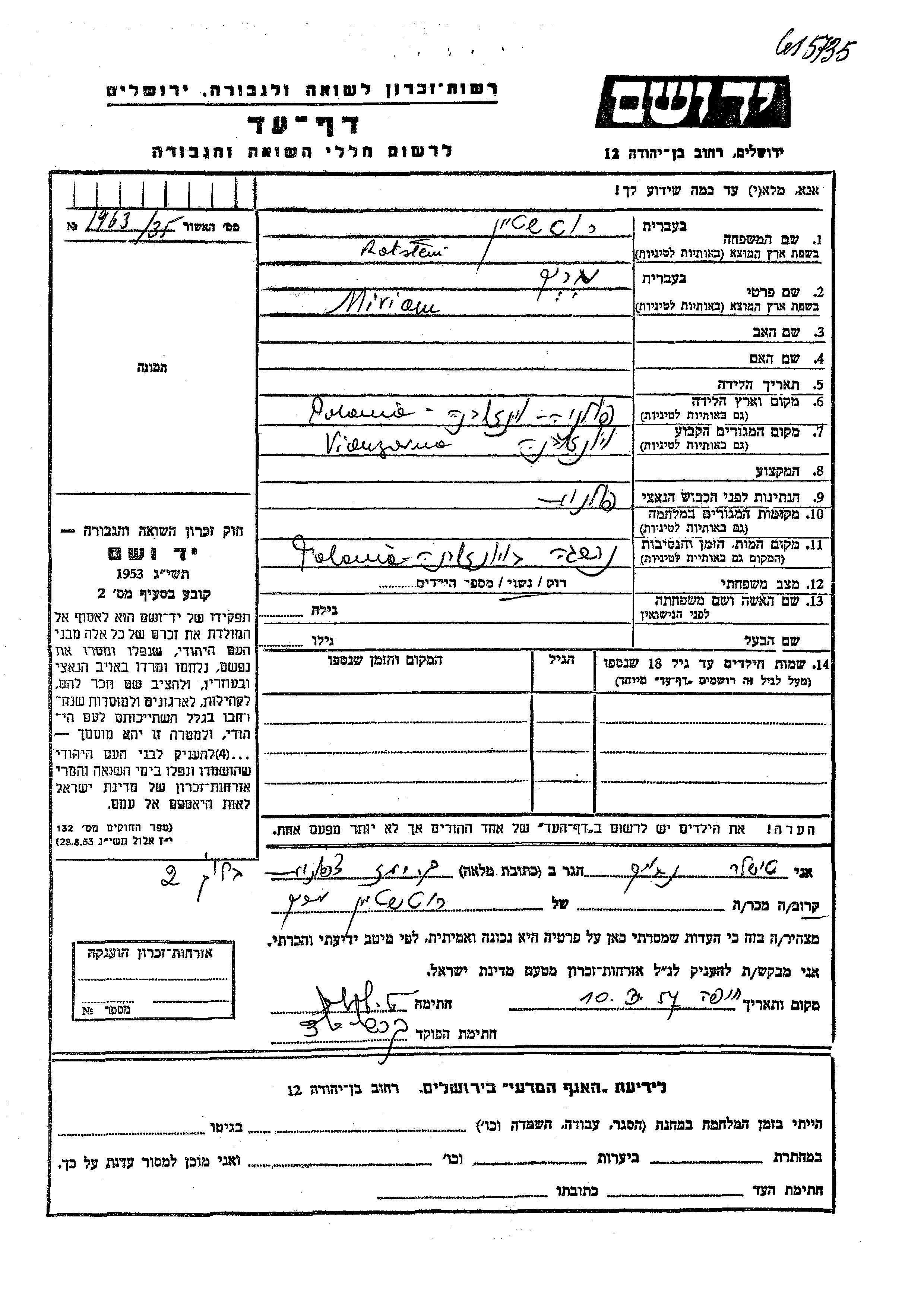 Rotstein Miriam Wiazowna, Poland Page of Testimony