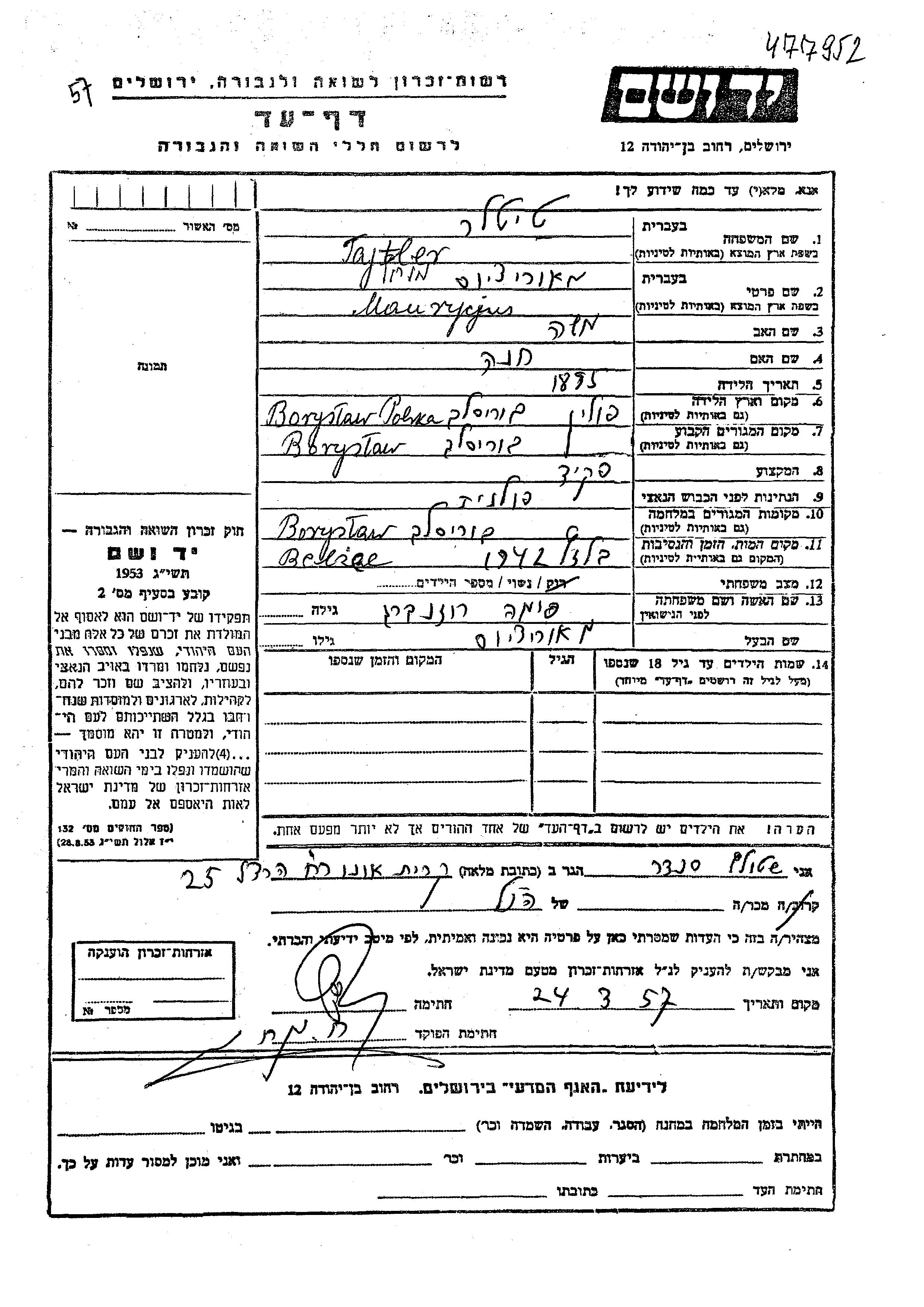 Tajtler Titler Maurycjus 1895 Borislav, Poland Page of Testimony