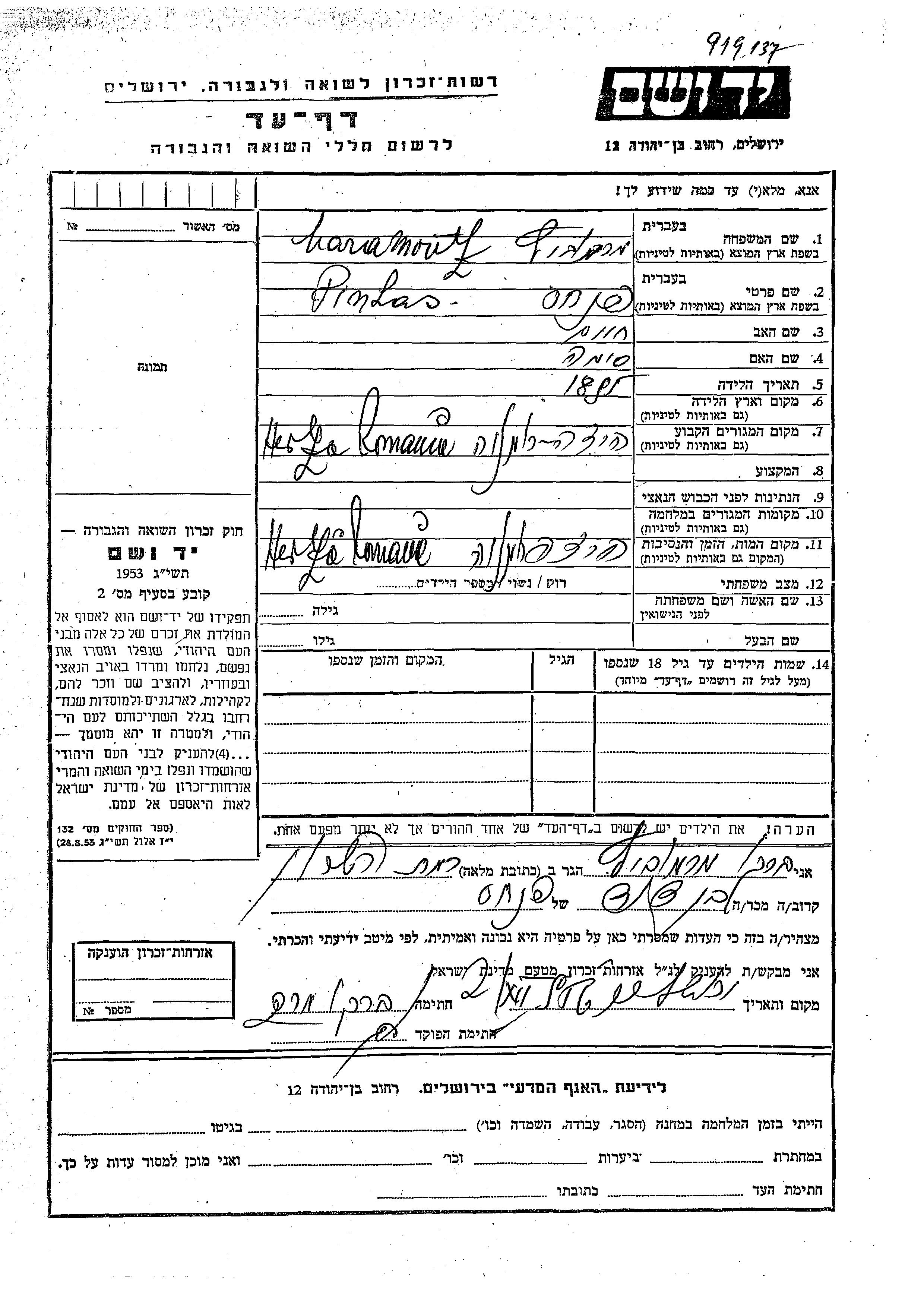 Search by name of Prewar permanent residence, Town, Village, District, Region or Country.