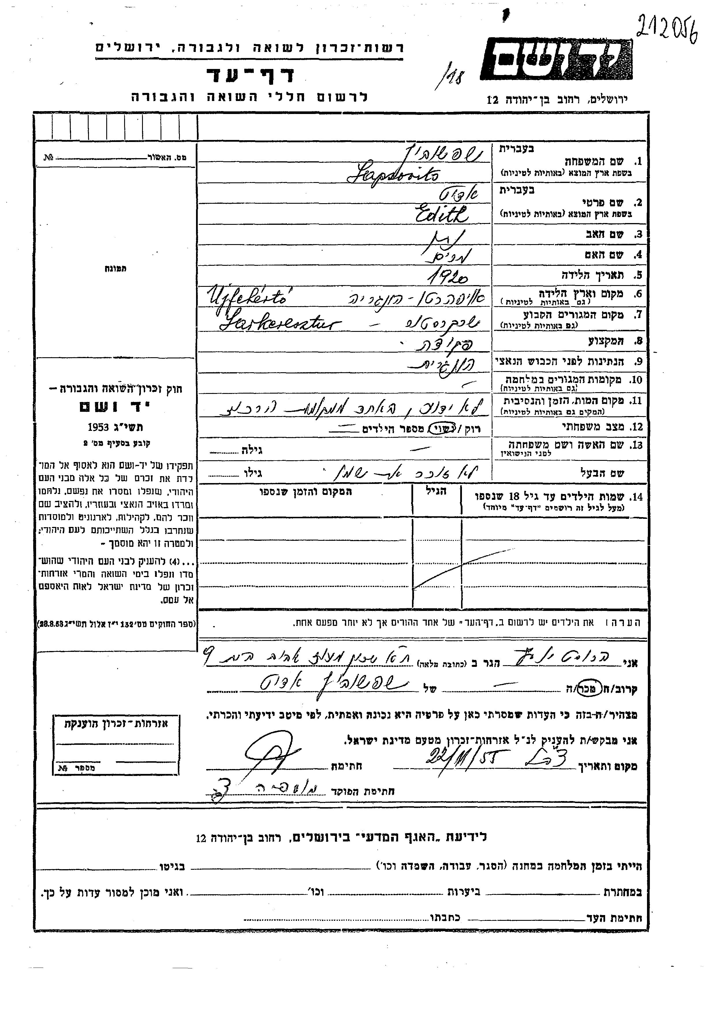 Yad Vashem - Pages of Testimony Names Memorial Collection