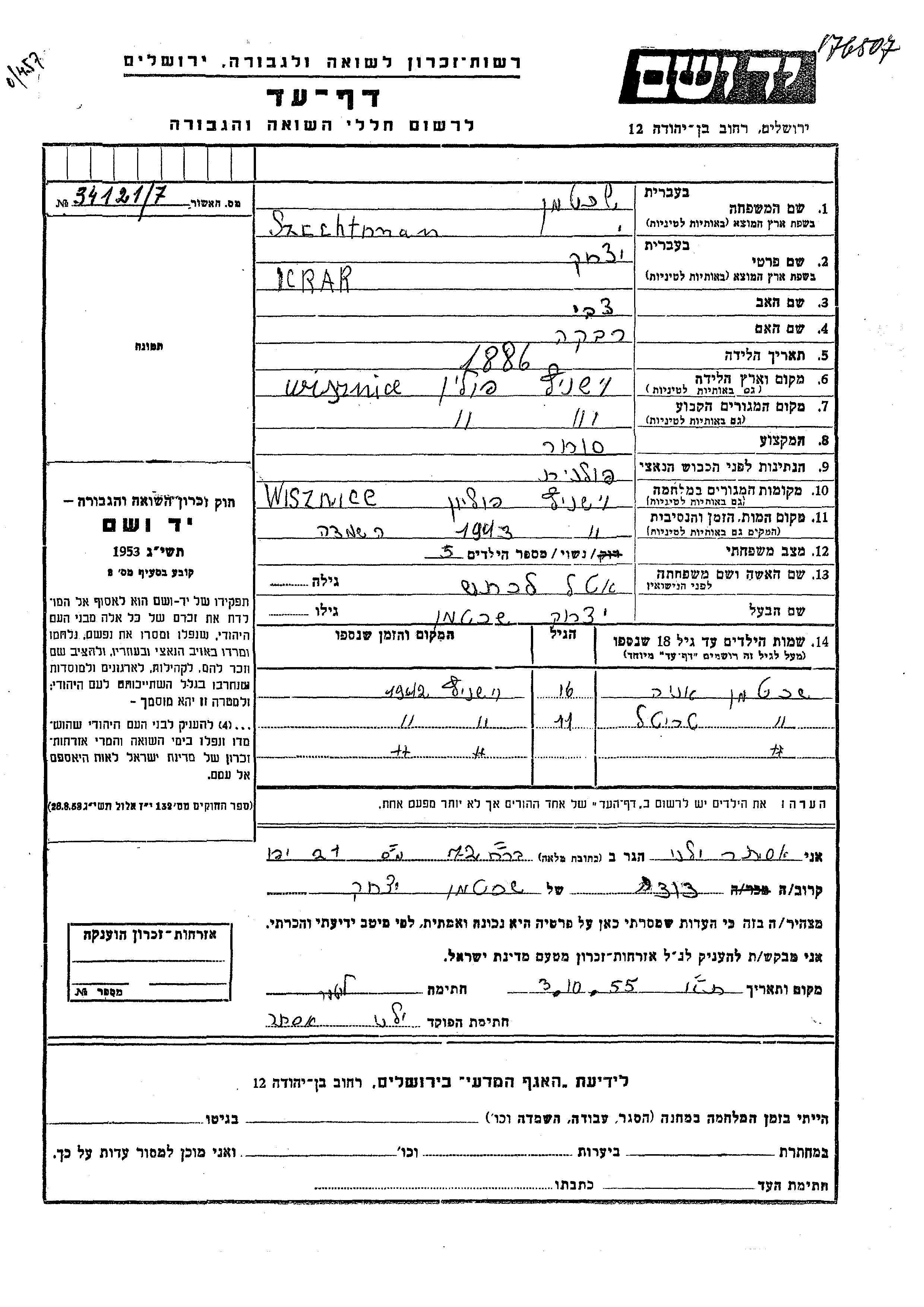 Szechtman Ickak 1886 Wisznice, Poland Page of Testimony