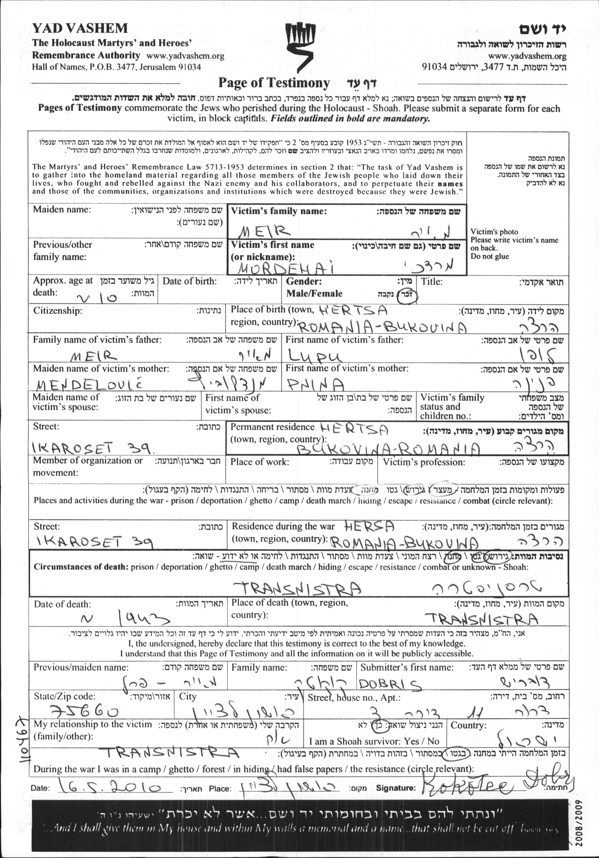 Search by last name of the submitter of the Page of Testimony, including diminutives or nicknames