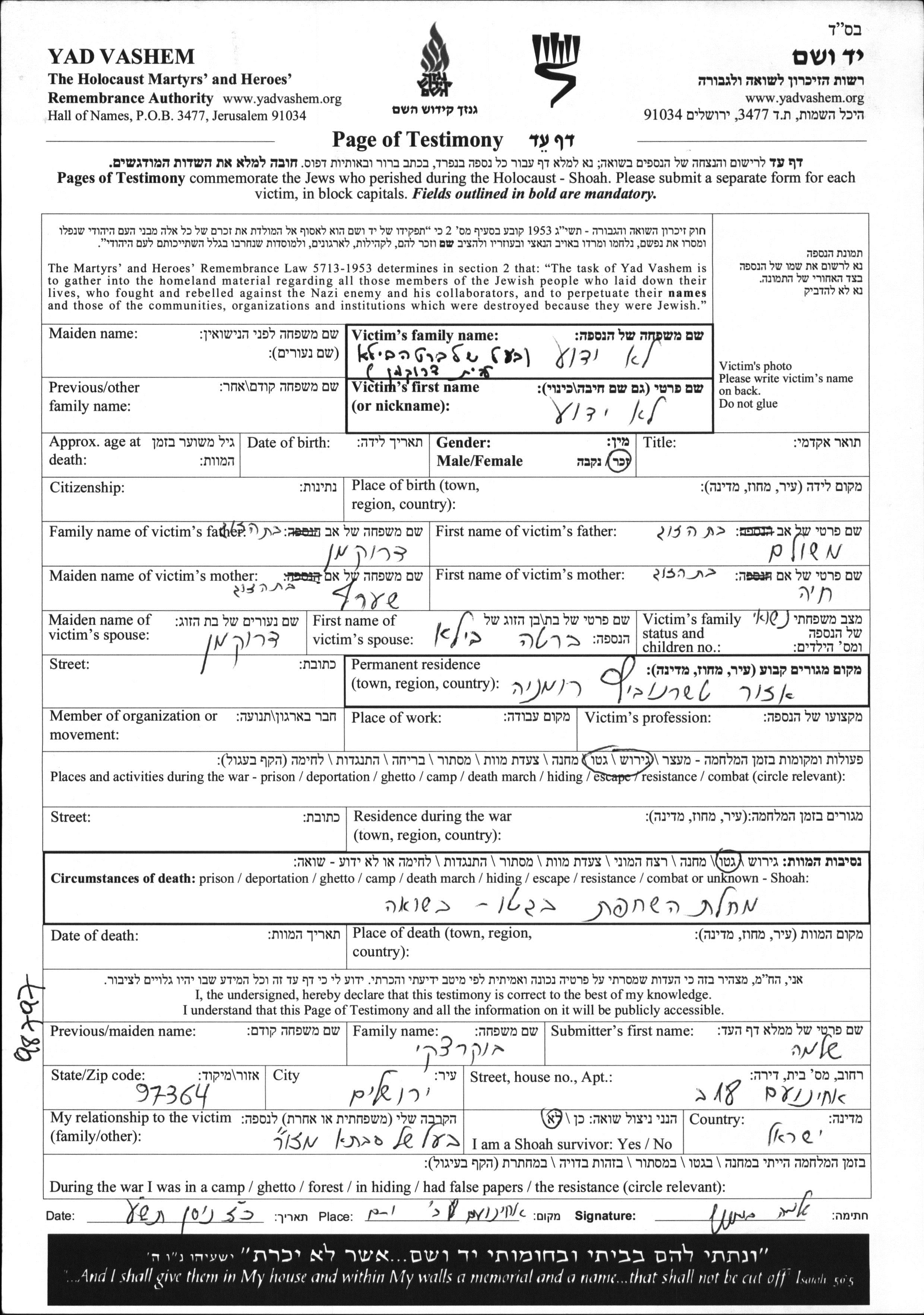 Yad Vashem - Pages of Testimony Names Memorial Collection