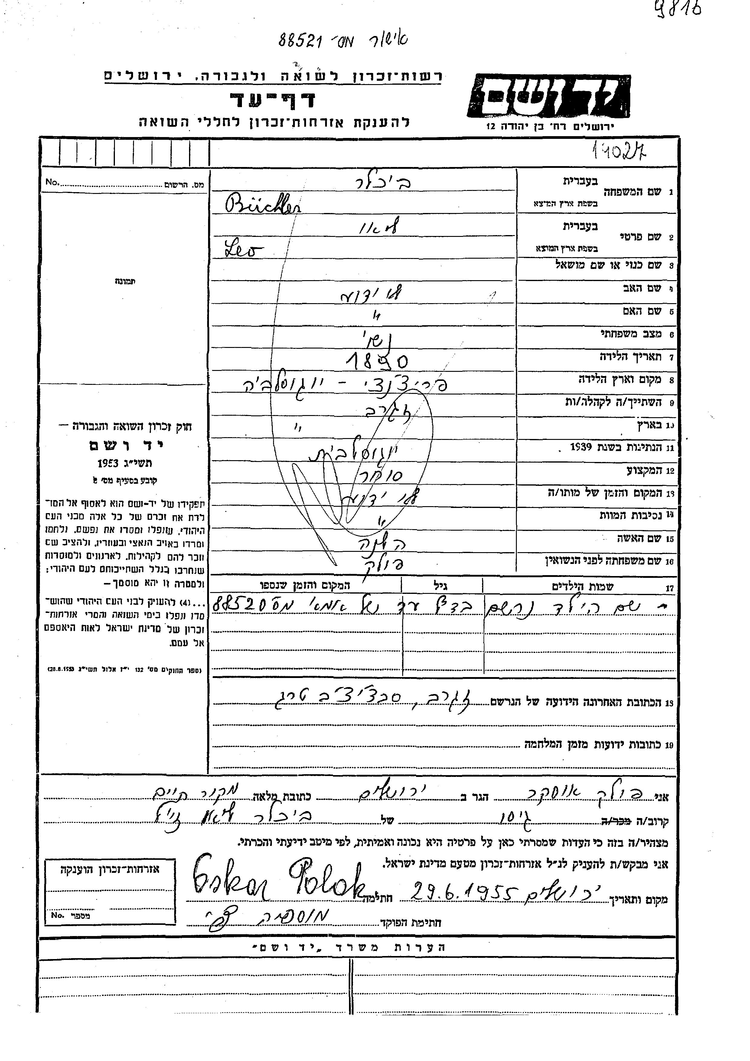Bikhler Buechler Leo 1890 Zagreb, Yugoslavia Page of Testimony