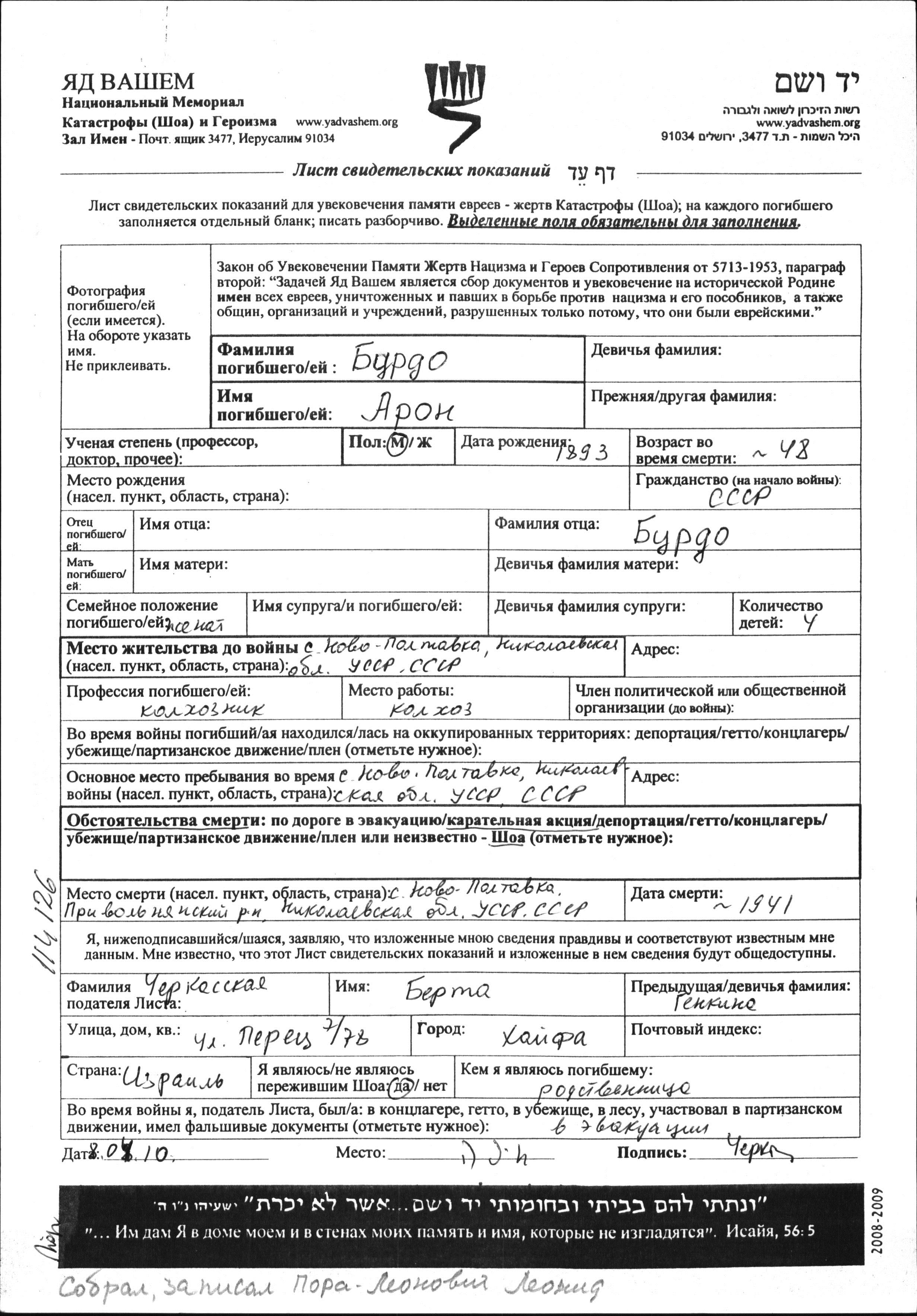 Search by last name of the submitter of the Page of Testimony, including diminutives or nicknames