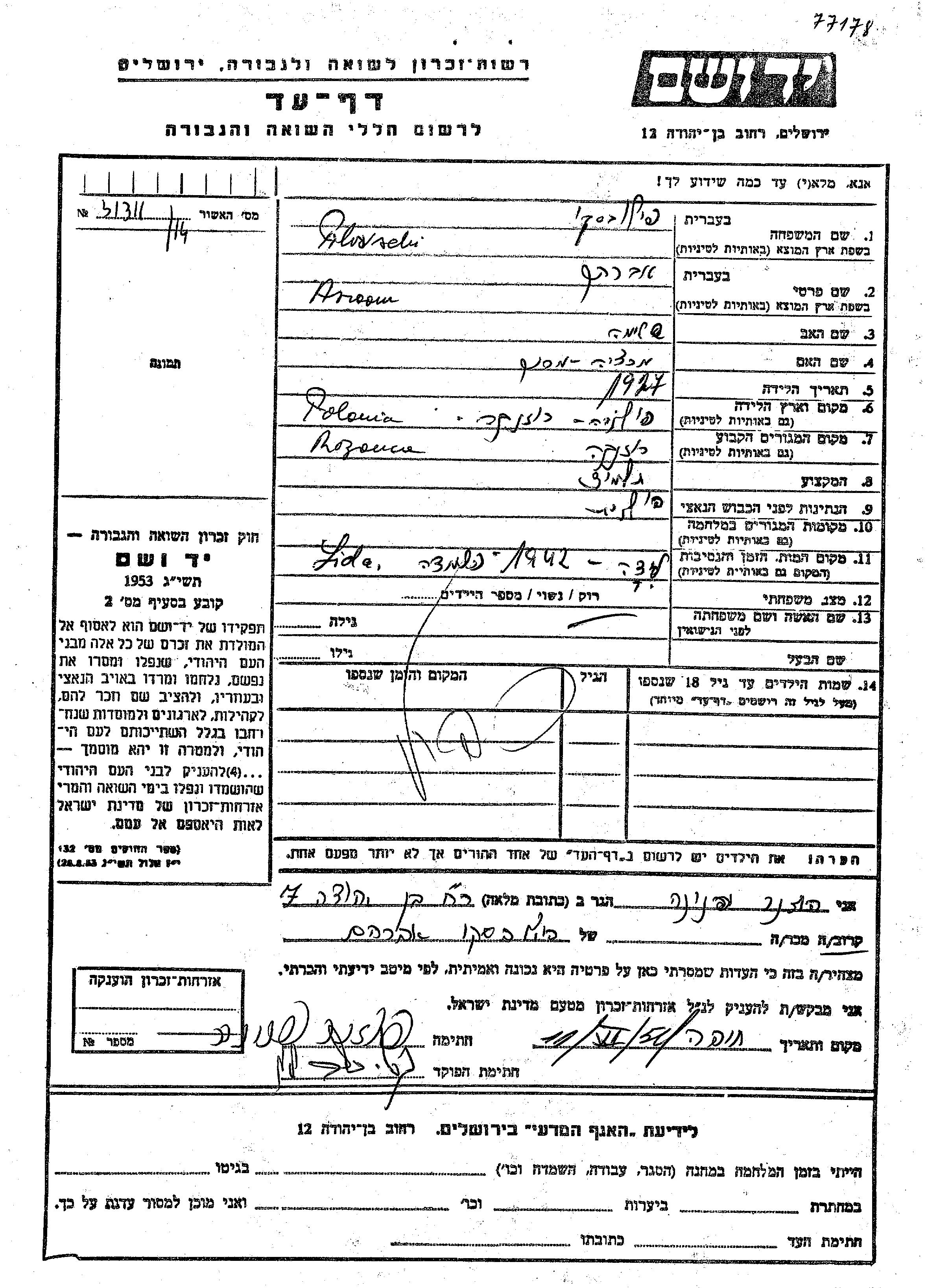 Yad Vashem - Pages of Testimony Names Memorial Collection