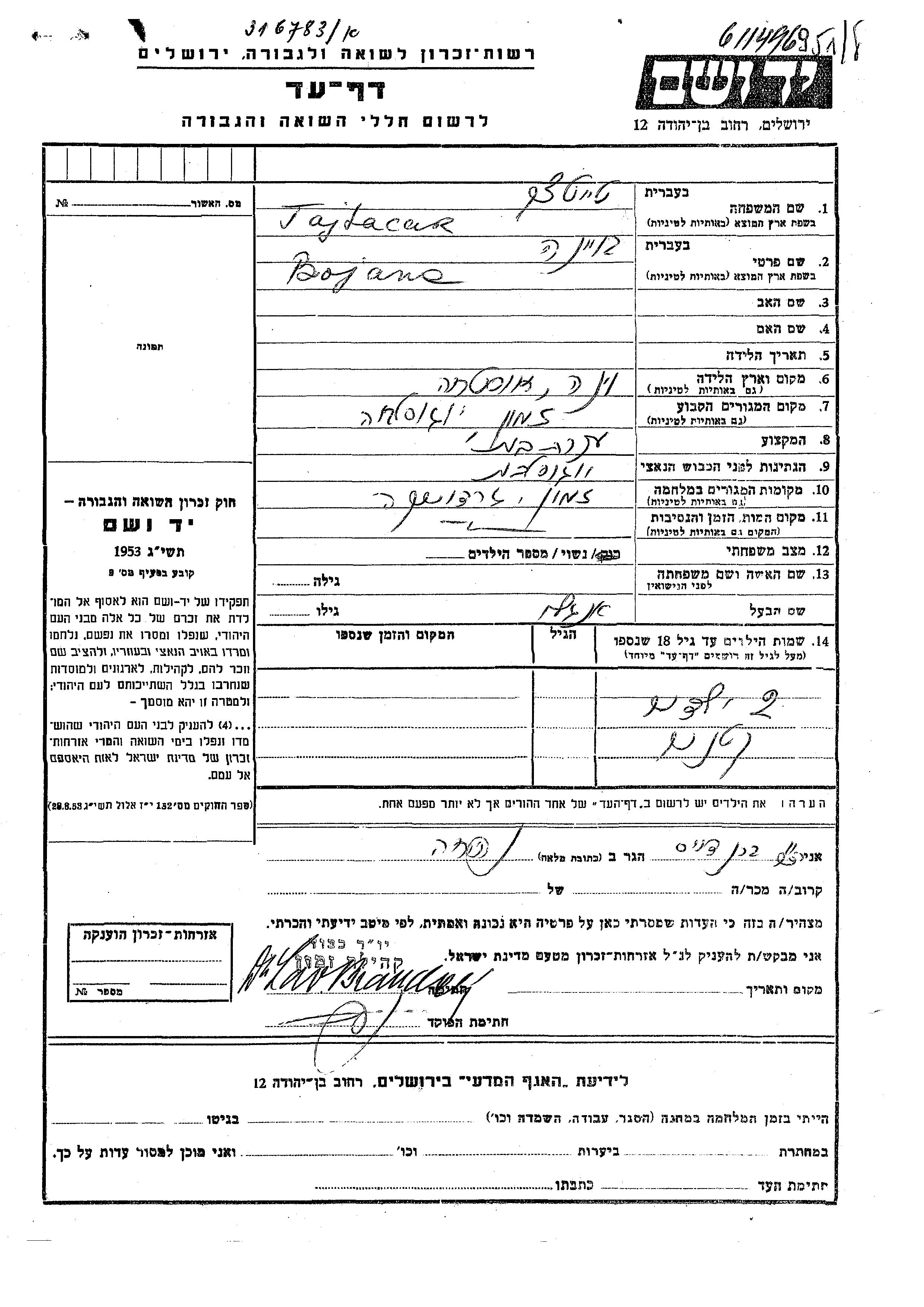 Tajtacak Boiana Zemun, Yugoslavia Page of Testimony
