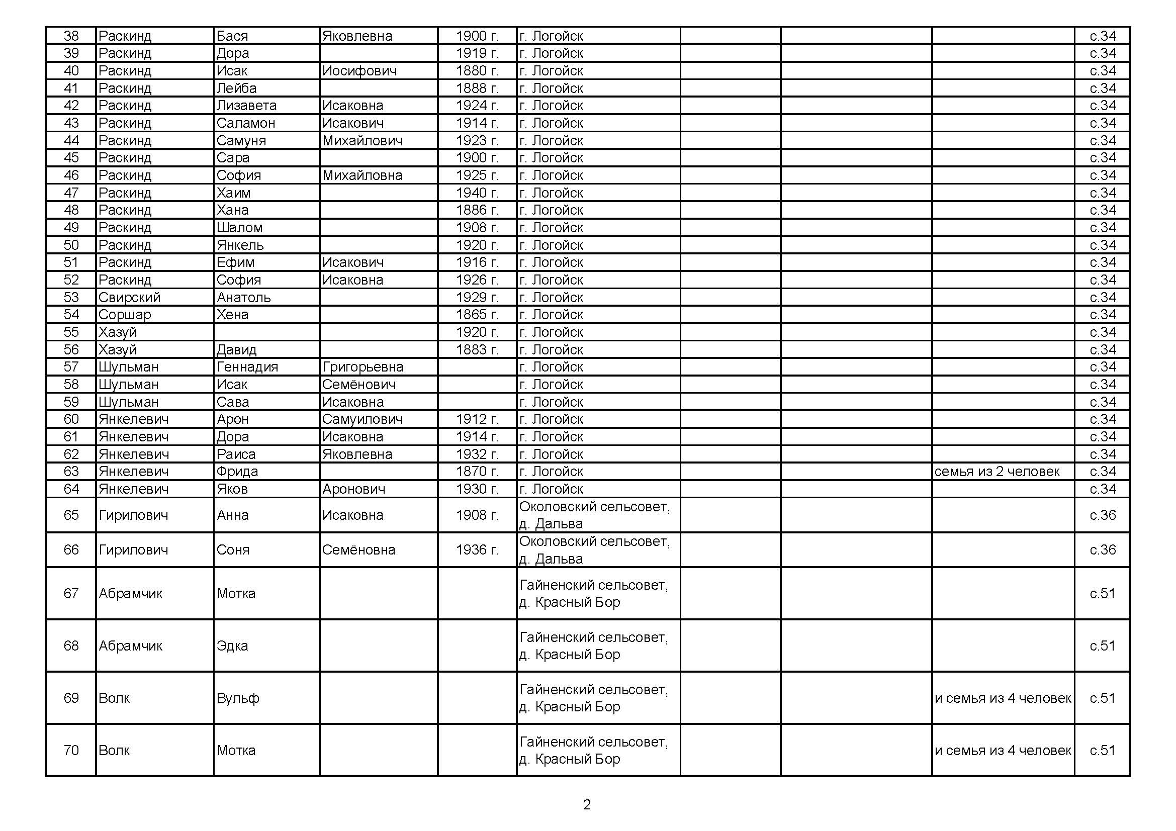 Shulman Gennadia Logoysk, Belorussia (USSR) List of persecuted persons