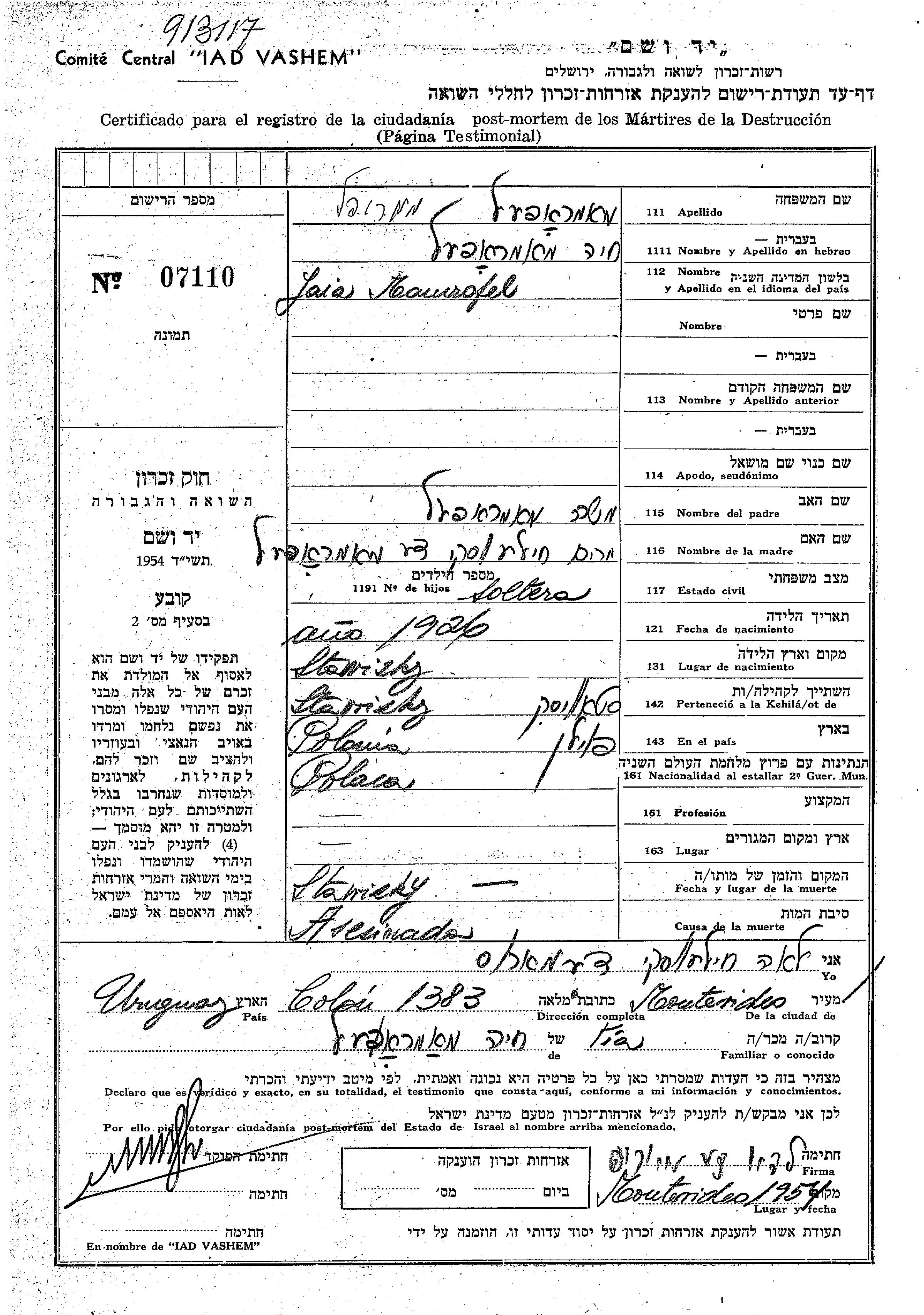 Jaia Mamrofel was born in Stawiski, Poland, 1926 to Moshe and Miriam. She was single. Prior to WWII she lived in Stawiski, Poland. Jaia was murdered in the Shoah. Place of death: Stawiski, Poland.